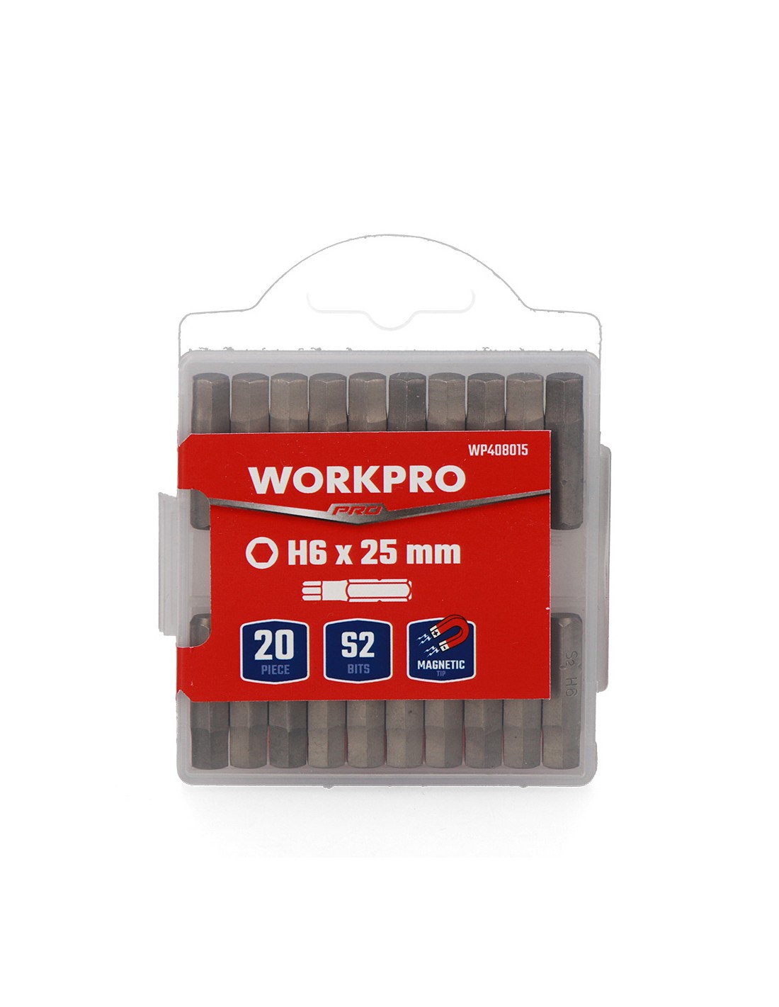 Juego de 20 puntas mágneticas, h6 x 25 mm, acero s2, alta dureza y torsión