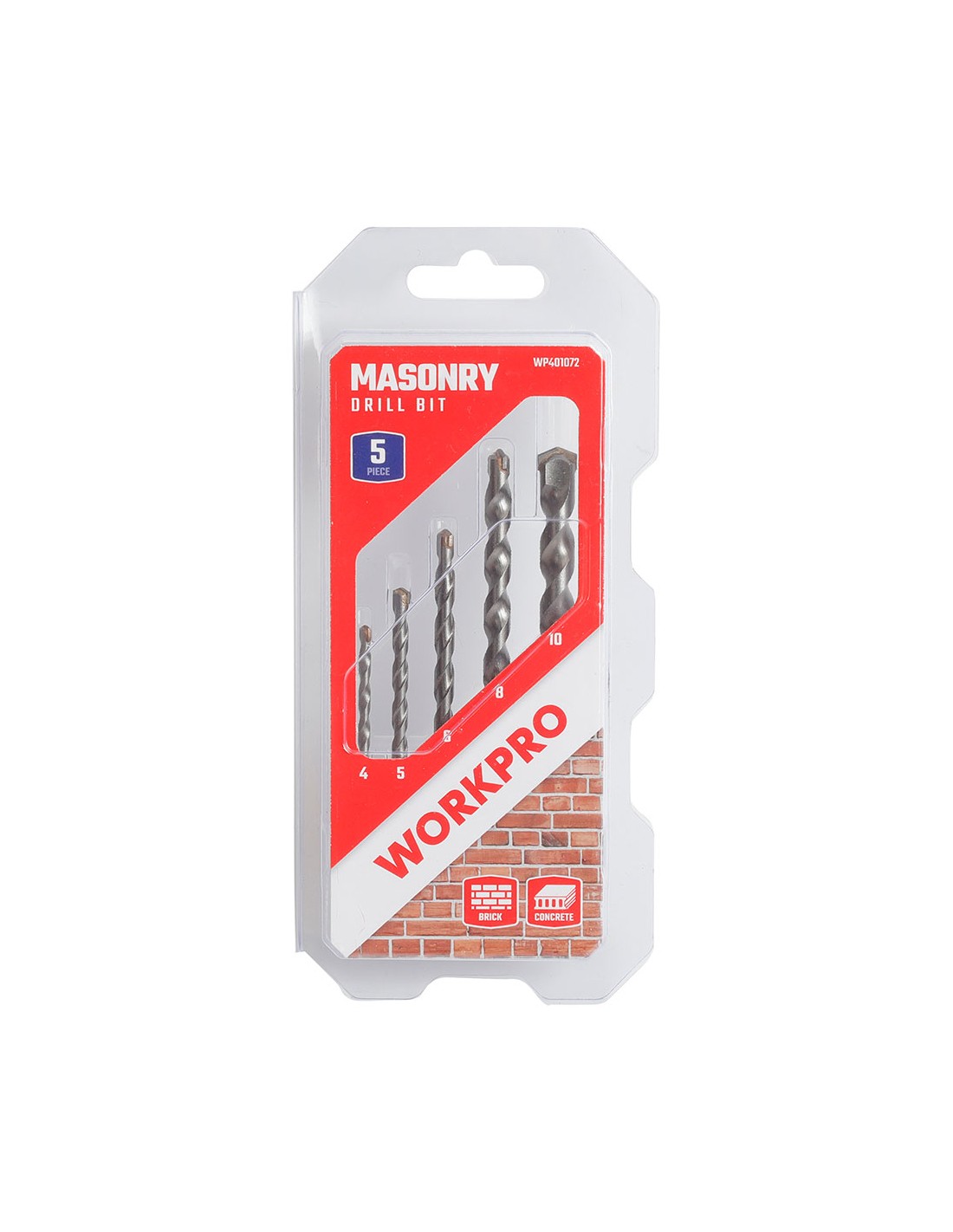 Brocas para mampostería, juego 5 piezas ø4,00 / ø5,00 / ø6,00 / ø8,00 / ø10,00 mm punta carburo de tugsteno yg8 y vástago de acero al carbono, arenado estría en u, rápida extracción de virutas