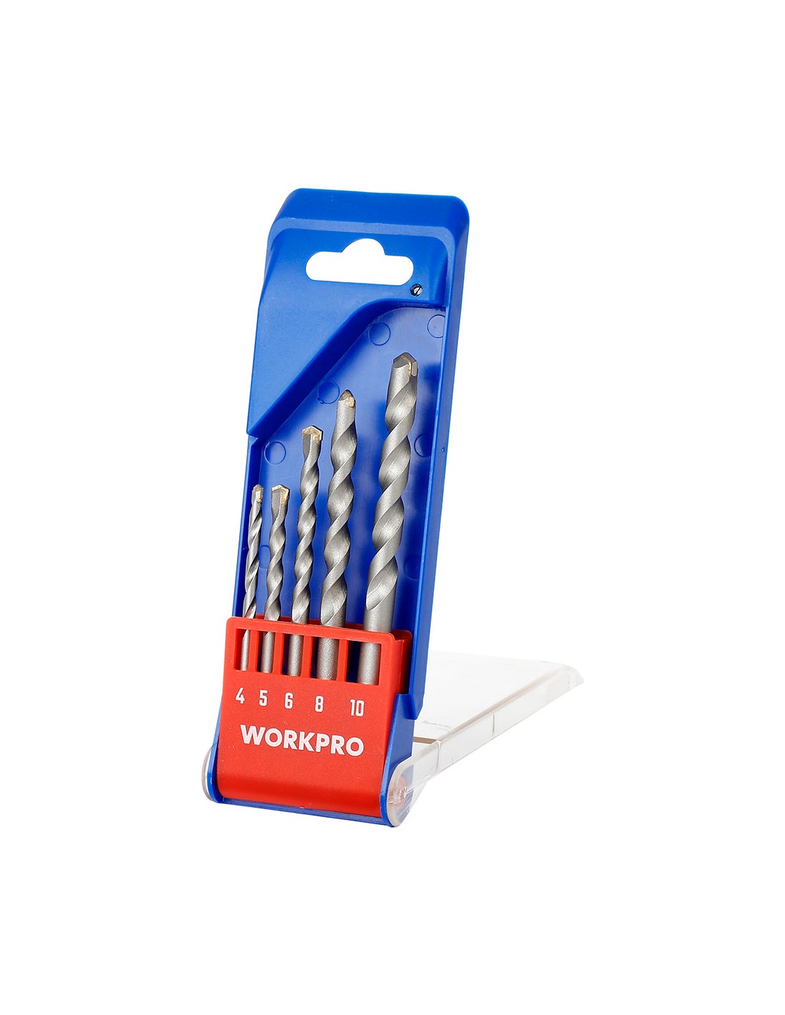 Brocas para mampostería, juego 5 piezas: ø4,00 / ø5,00 / ø6,00 / ø8,00 / ø10,00 mm punta carburo de tugsteno yg8 y vástago de acero al carbono, arenado estría en u, rápida extracción de virutas