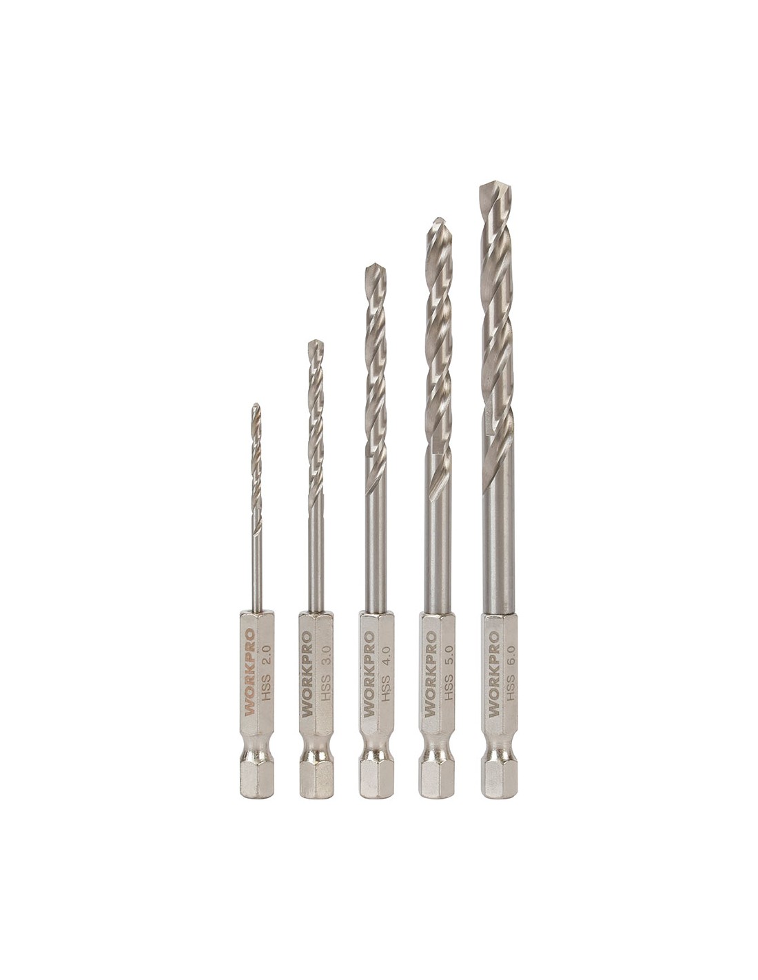 Brocas vástago hexagonal ¼ pulg acero hss4341 para metal, rectificadas, cambio rápido, acabado brillante, juego 5 piezas: ø2,00 / ø3,00 / ø4,00 / ø5,00 / ø6,00 mm