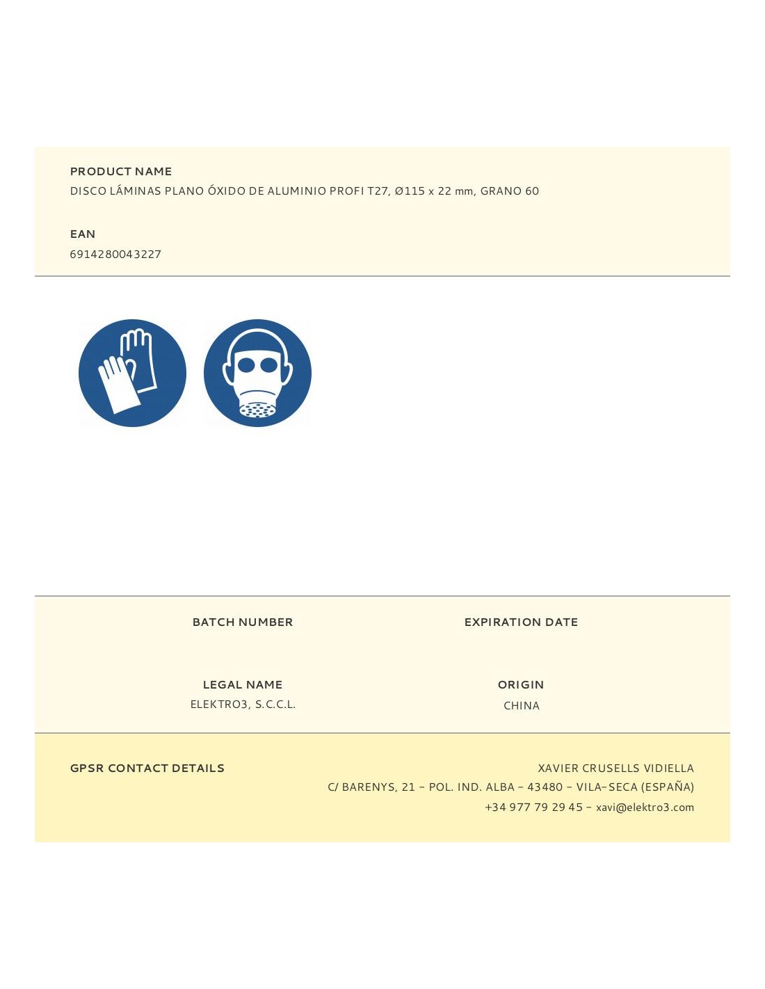 Disco láminas plano, ø115 x 22,2 mm, grano 60 para acero endurecido y acero aleado abrasivo de óxido de aluminio disco flexible, tipo 27, máx. 80 m/s 13.300 rpm