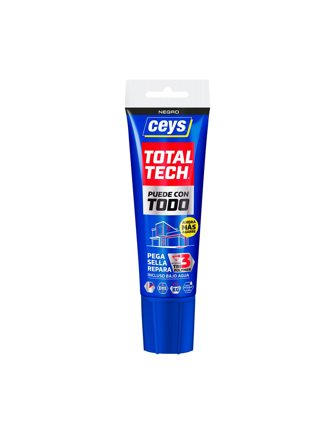 Adhesivo sellador total tech negro tubo 125 ml. adhesivo sellador base polímero que pega, repara bajo todo tipo de condiciones, incluso bajo agua