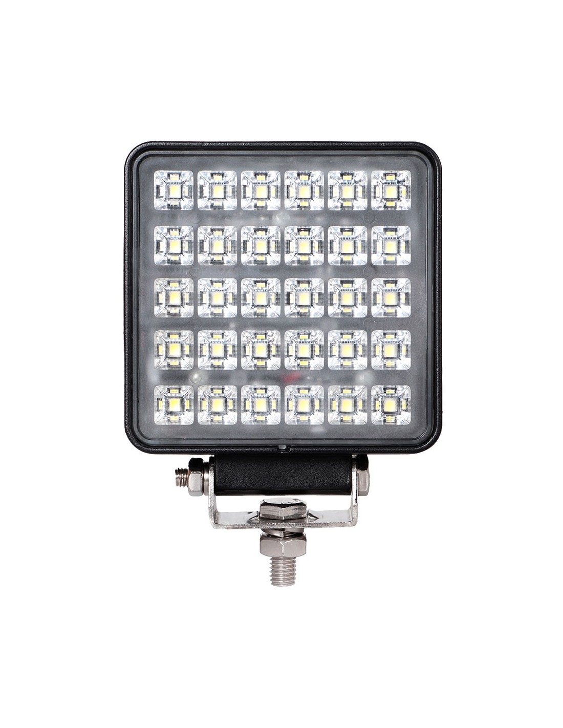 Faro de trabajo cuadrado 25 w, 30 leds flujo luminoso 2700 lm 6000 k luz fría tensión de funcionamiento 9 - 32 v grado de protección ip67. vida estimada 50000 h, interruptor trasero incluye soporte con kit tornillería, dimensiones 11 x 3,5 x 10,5 cm