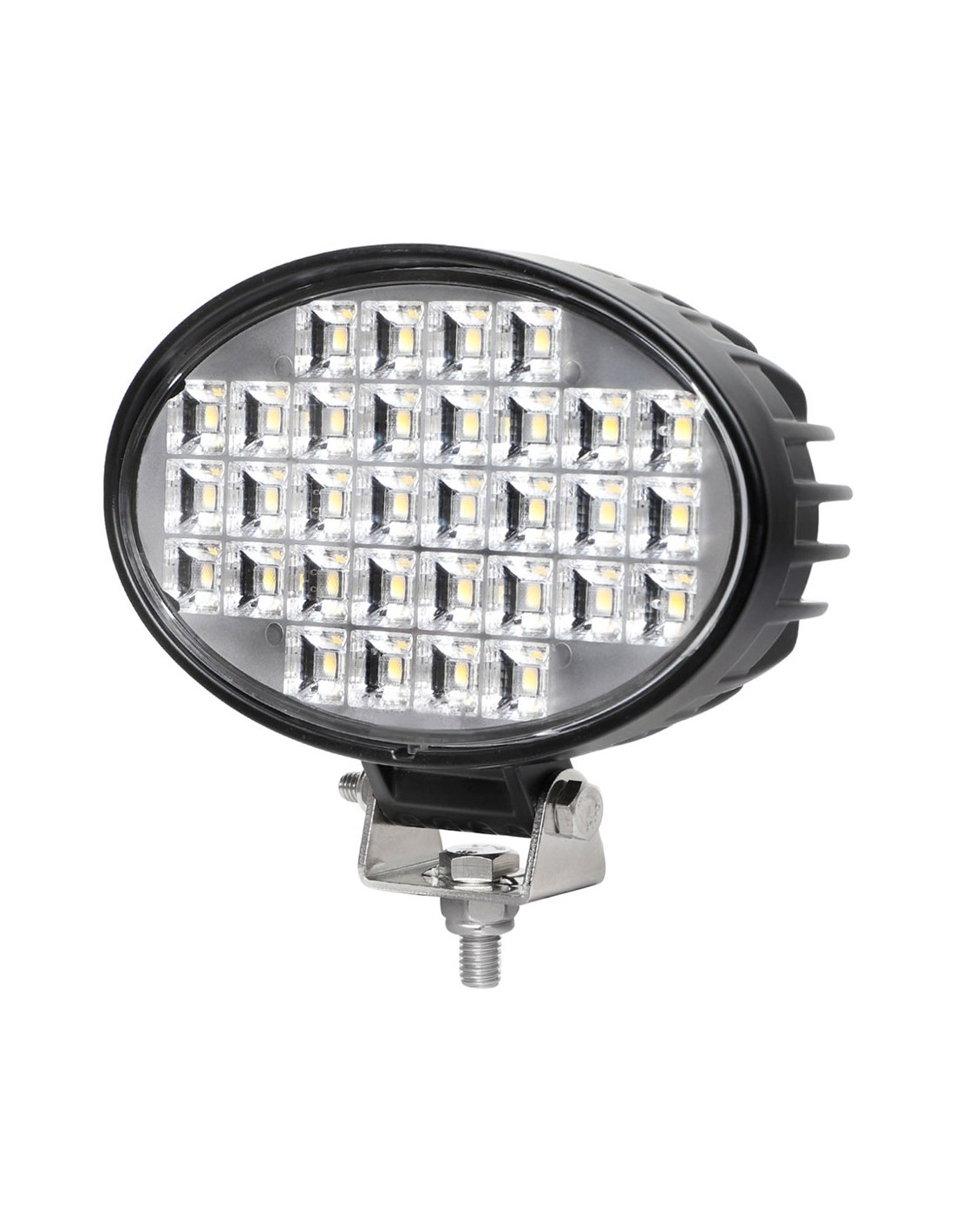 Faro de trabajo ovalado 27 w, 32 led flujo luminoso 2800 lm 6000 k luz fría, tensión de funcionamiento 9 - 32 v grado de protección ip67. vida estimada 50000 h, interruptor trasero incluye soporte con kit tornillería, dimensiones 14,5 x 5 x 9 cm