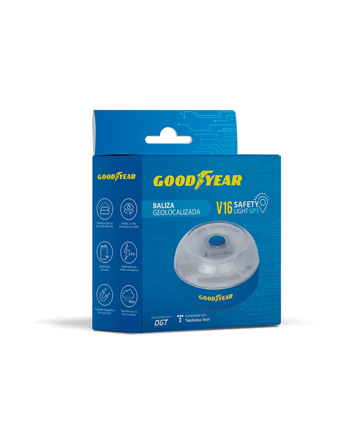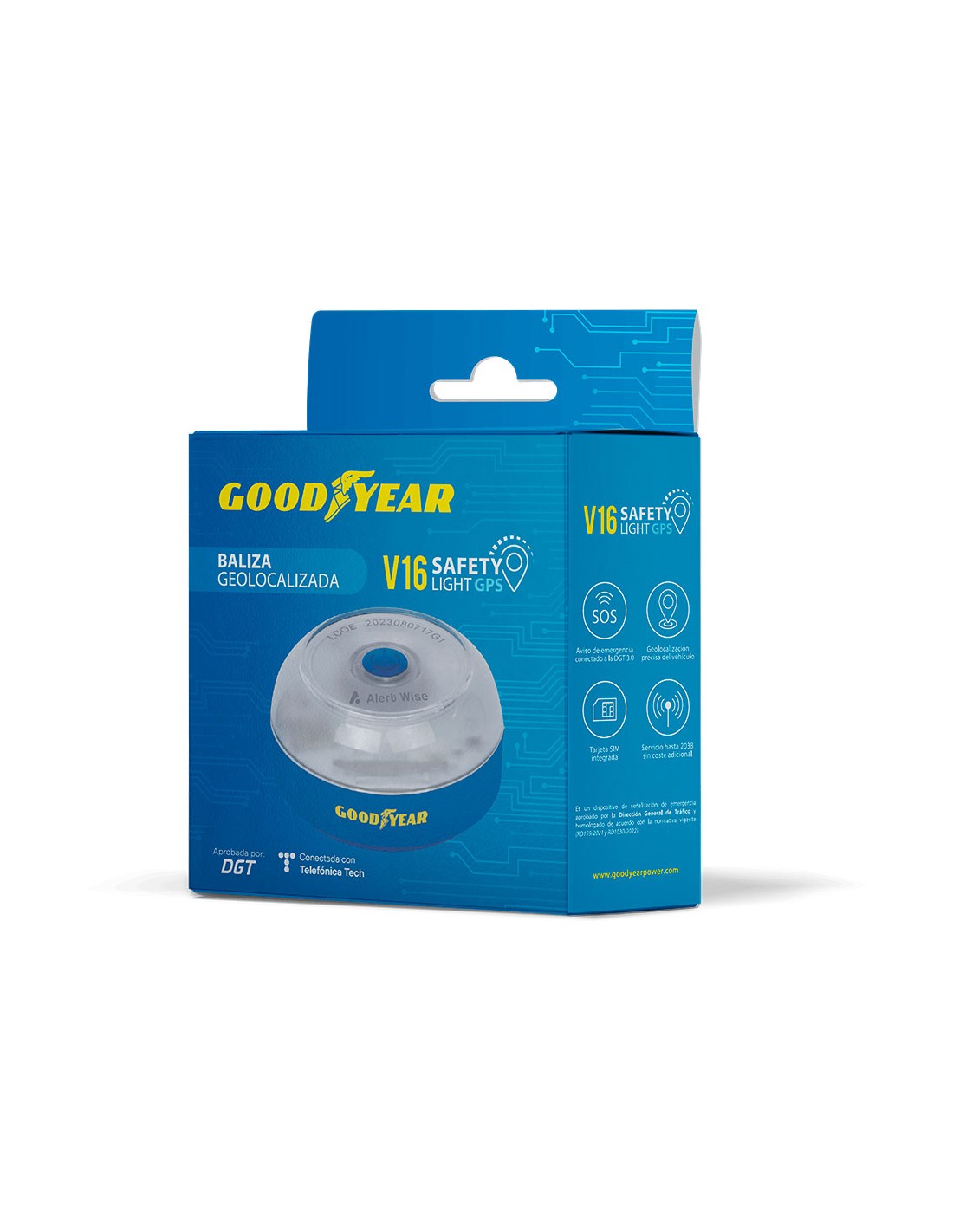 Baliza v16 de emergencia homologada conectada geolocalizable con dgt 3.0 alert wise goodyear sim válida hasta 01/01/2038 ip54, visible a 1 km 360° -10 y 50°c sujeción magnética máximo seis horas de autonomía, magnética, funciona 3 x aa pilas incluidas