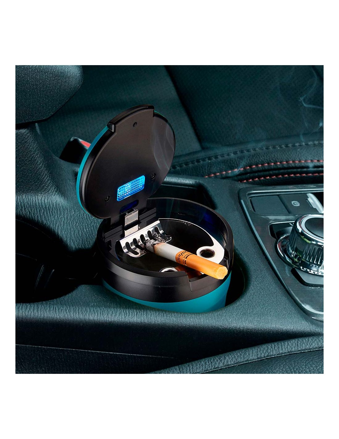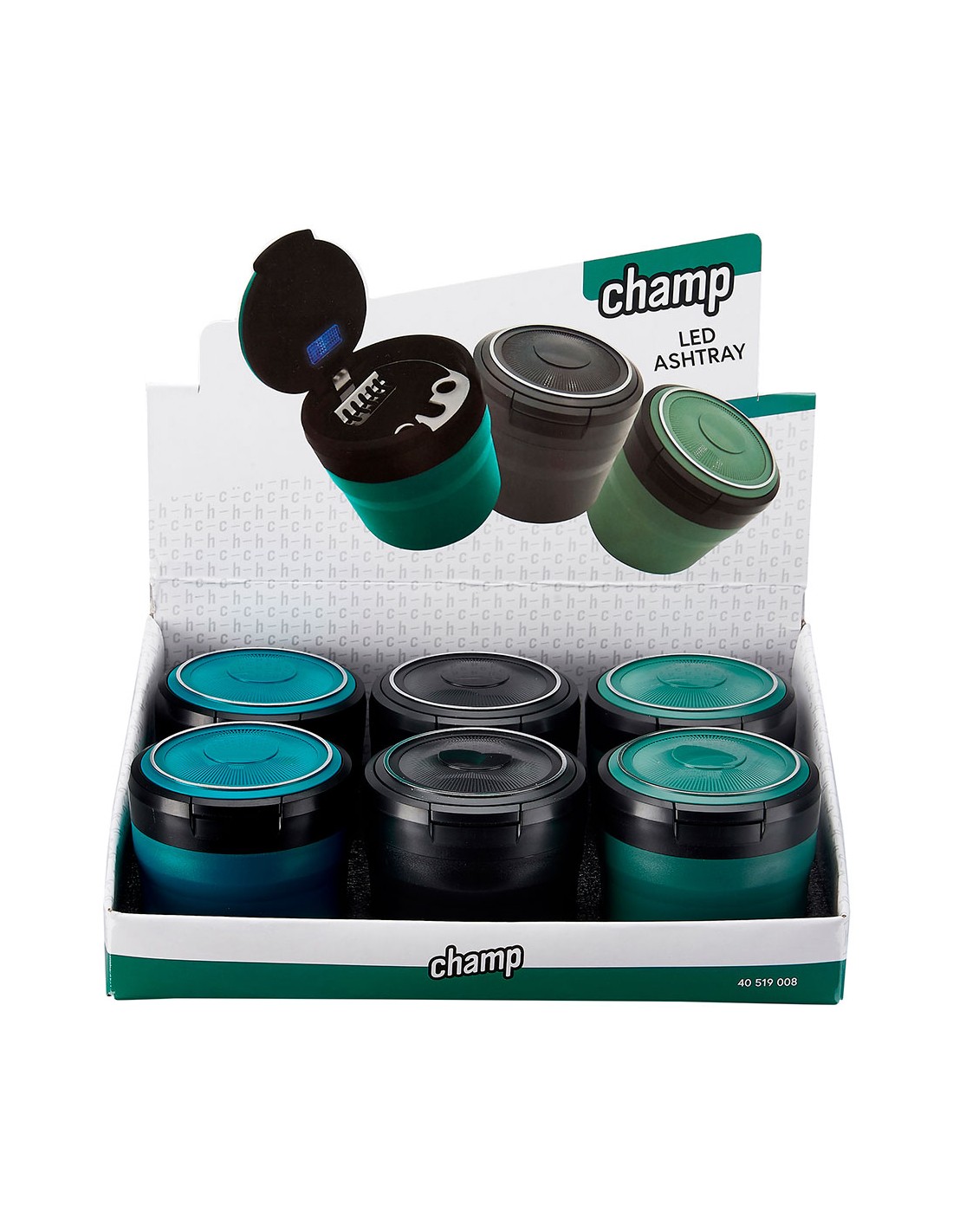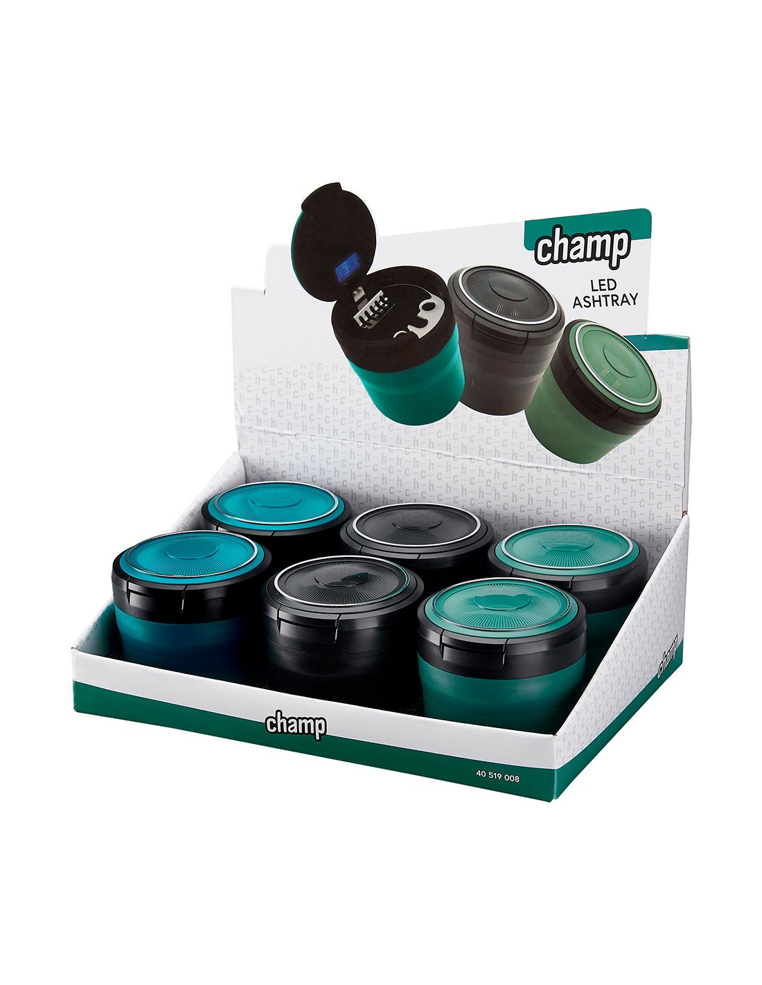 Cenicero redondo con led, dimensiones: ø8 x 7 cm colores surtidos presentado en expositor de 6 uds