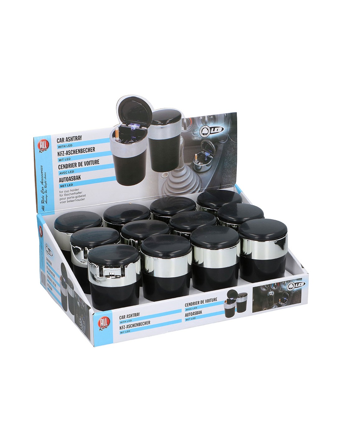 Cenicero para coche con led integrado para uso nocturno, compatible con la mayoría de los portavasos y fácil de limpiar abs ø8 x 12,5 cm presentado en expositor de 12 uds