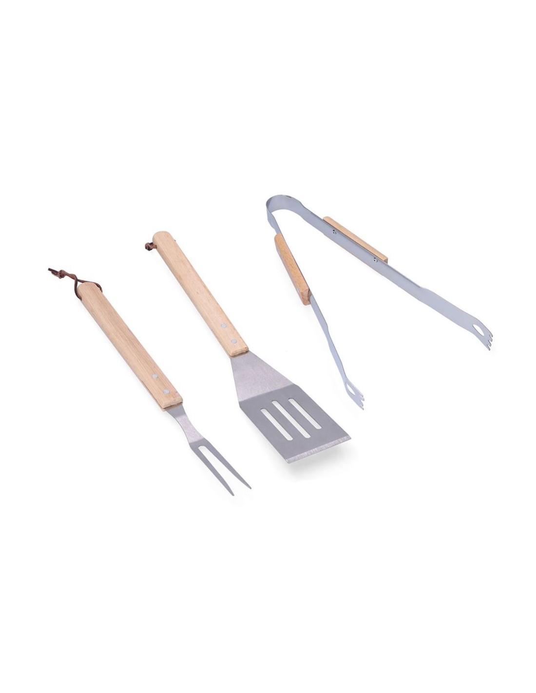 Conjunto de 3 utensilios para barbacoa roble/acero inox