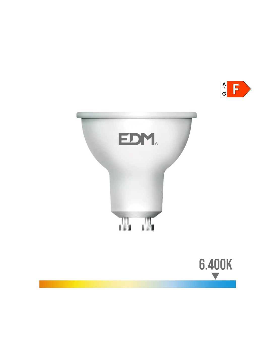 Bombilla dicroica led gu10 7w 550m 6400k luz fria ø5x5,5cm (diámetro/alto) 25000h ac 220-240v clase energetica: f. angulo de apertura: 45° edm