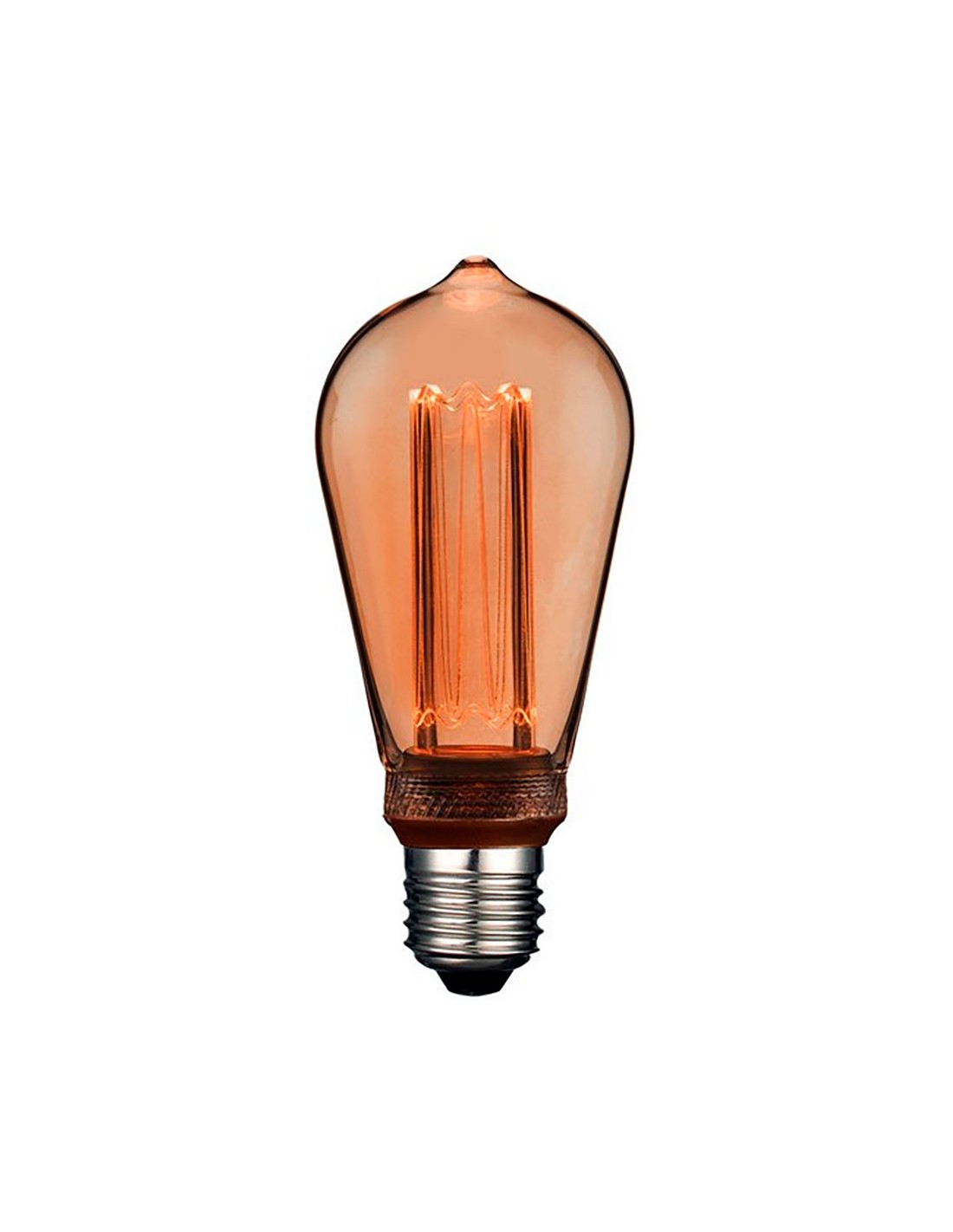 Bombilla led st64 decorativa edison, e27, 4 w, 200 lm, 1800 k, luz cálida, 220-240 v 50-60 hz, ø64 x 142 mm, vintage imitación filamento ámbar, fabricada en cristal dorado tallado en su base, contiene un tubo de metacrilato grabado con láser iluminado con led smd oculto en el interior del casquillo, vida útil 20000 h, no regulable, flujo luminoso 360°, el cristal exterior se puede extraer desenroscando, ángulo de apertura 320°