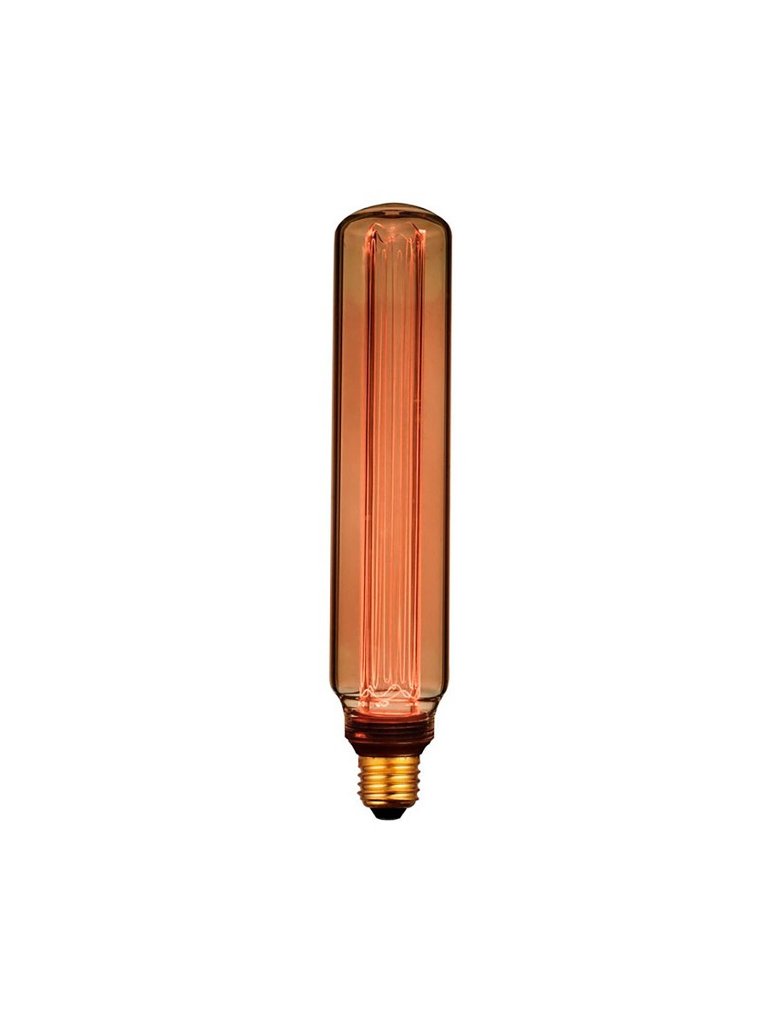 Bombilla led t60 decorativa, tubular, e27, 4 w, 200 lm, 1800 k, 220 - 240 v ~50/60 hz, luz cálida, ø60 x 300 mm, vintage imitación filamento ámbar, gran tamaño, fabricada en cristal dorado tallado en su base, contiene un tubo de metacrilato grabado con láser iluminado con led smd oculto en el interior del casquillo, vida útil 20000 h, no regulable, ángulo apertura 360°, el cristal exterior se puede extraer desenroscando