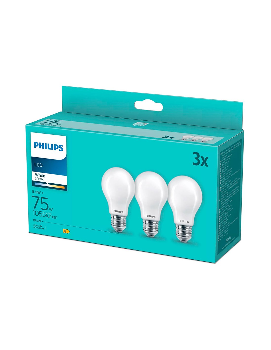 Bombilla led de filamento mate e27 8,5 w (equiv. 75 w) 1055 lm 3000 k luz cálida acabado opal, cri 80 clasificación energética e vida útil: 15.000 h 220 - 240 v ac 50/60 hz. flujo luminoso 360°. dimensiones: ø6 x 10,4 cm. 3 uds