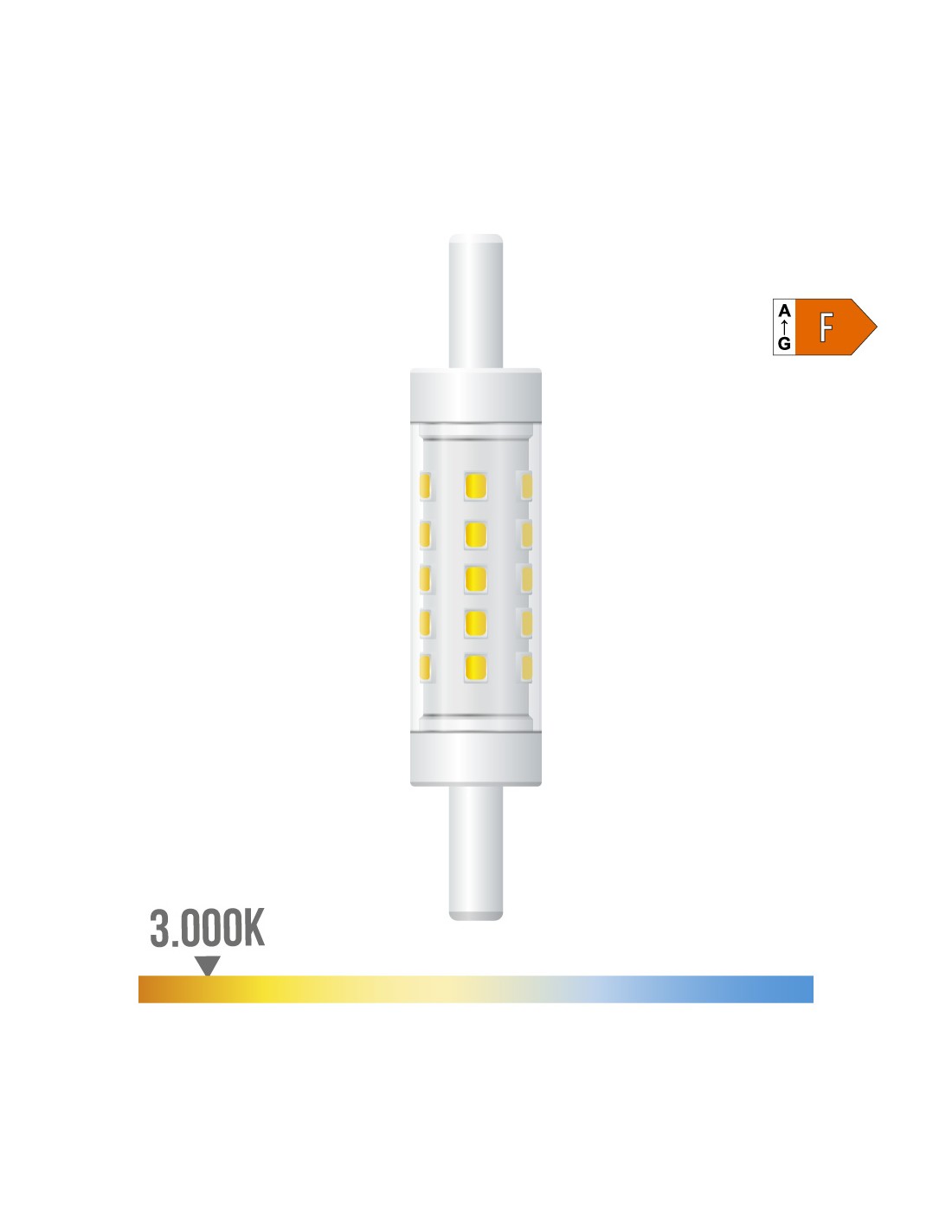 Bombilla lineal led r7s, 5 w, 500 lm, 6400 k, luz fría, regulable, clase energética f, vida estimada 15.000 h, ángulo de apertura 300°, tipo flujo luminoso 360°, 220-240 v~50/60 hz, ø15 x 78 mm