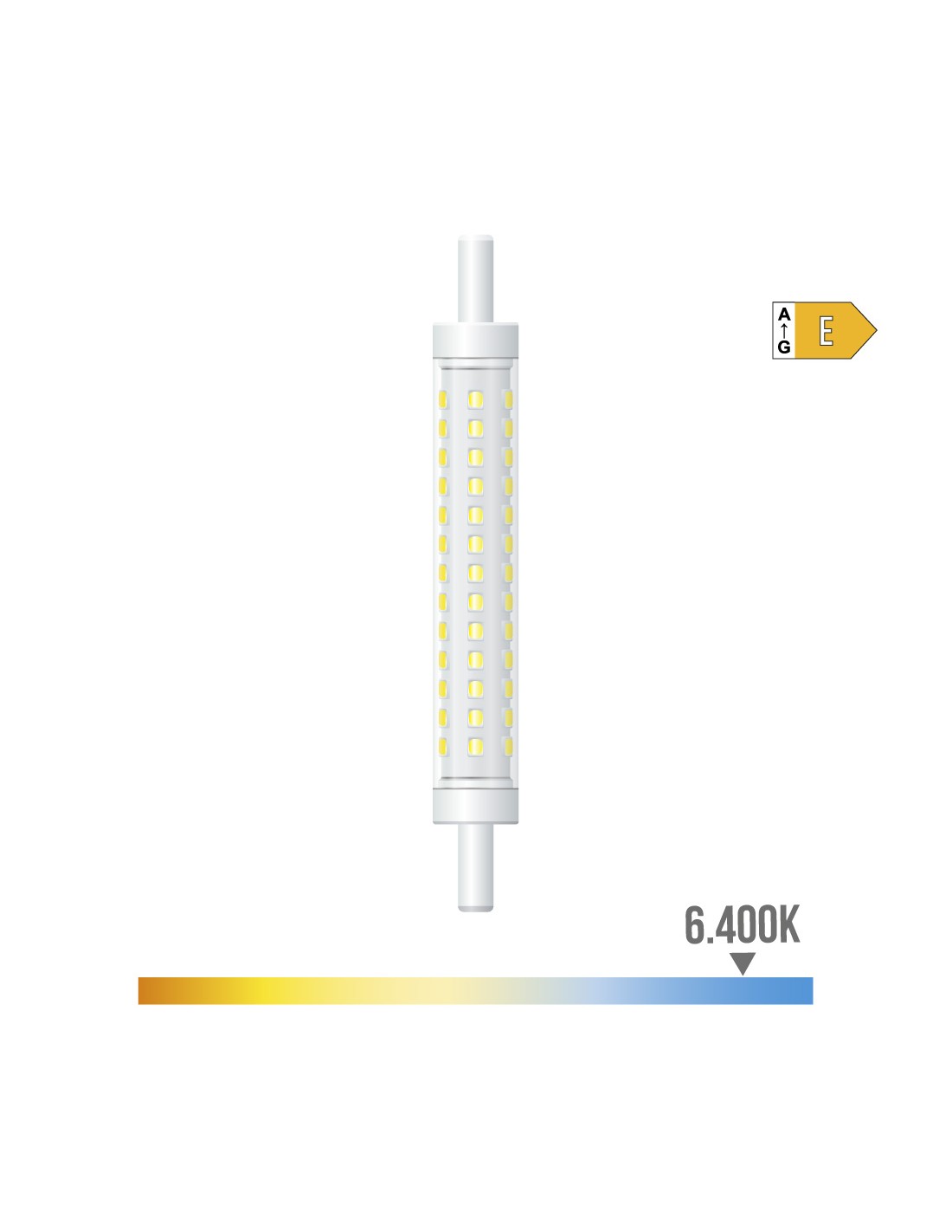 Bombilla lineal led r7s, 8 w, 900 lm, 6400 k, luz fría, regulable, clase energética e, vida estimada 15.000 h, ángulo de apertura 300°, tipo flujo luminoso 360°, 220-240v~50/60 hz, ø15 x 118 mm