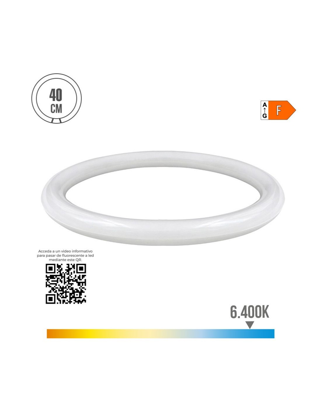 Tubo circular led g10q 32w 3400lm 6400k luz fria (eq. 40w) medidas: ø40cm 20000h ( atención solo funciona a 220-240v sin reactancia. portalamparas y cebador incluidos) clase energética: f. angulo de apertura: 360°