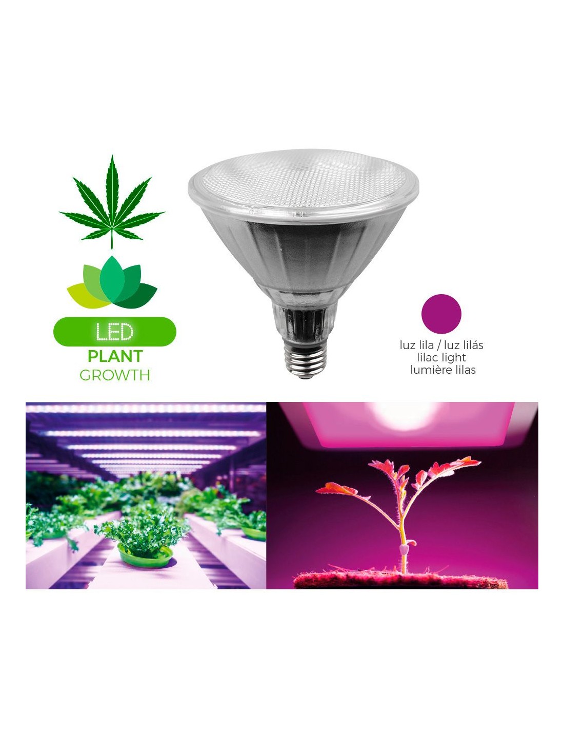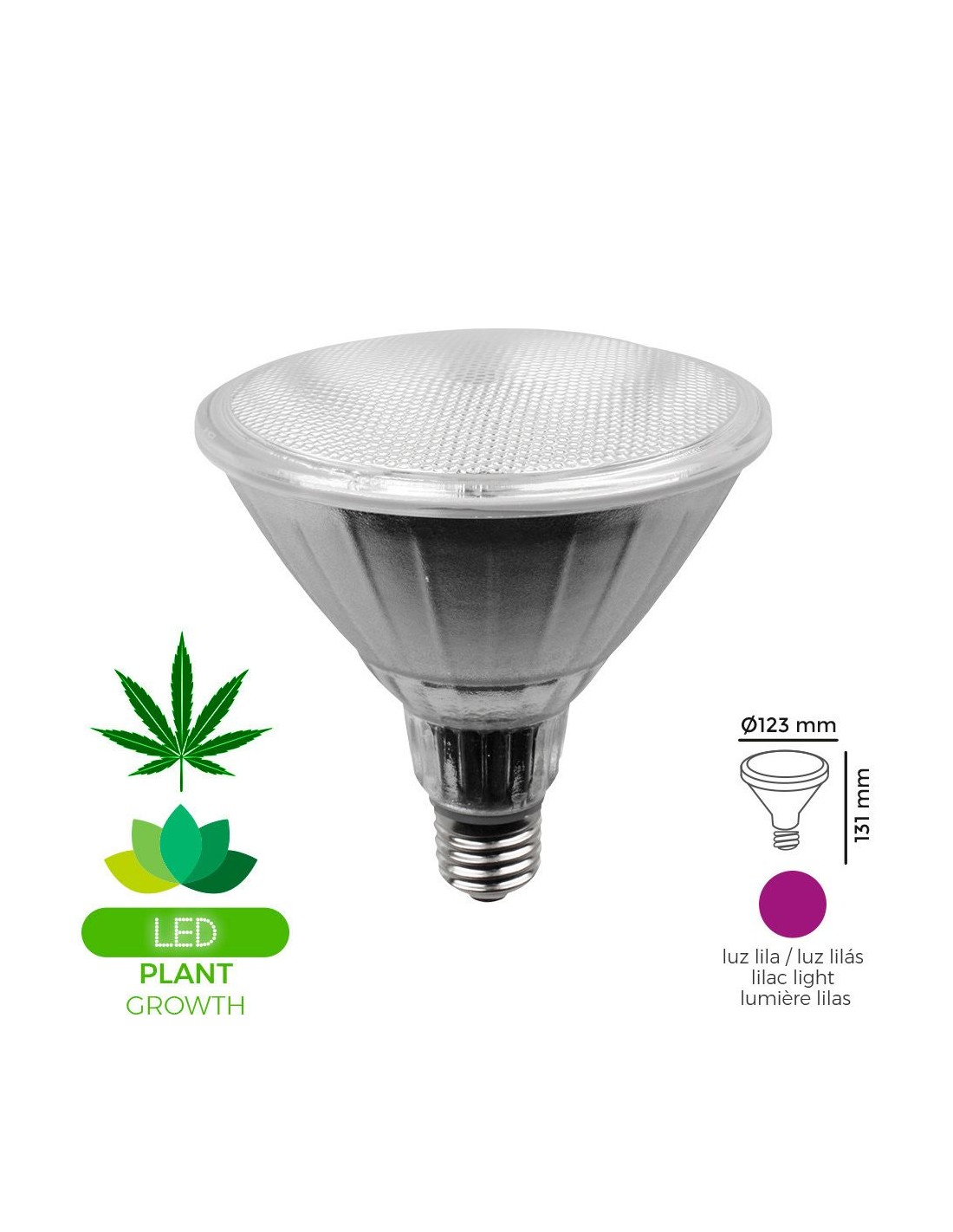 Bombilla grolux par38 led e27 13w 110lm luz lila ø12,3 x 13,1 cm 25000h ac 110/240v clase energetica: a+ angulo de apertura: 60° ideal para el crecimiento de plantas