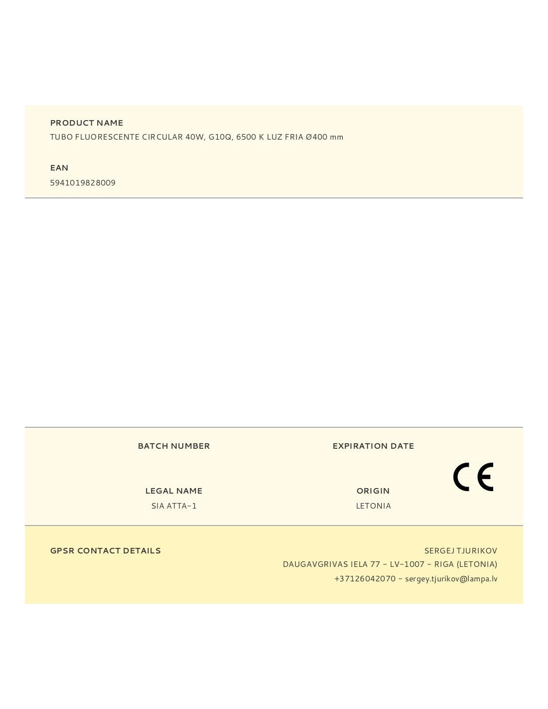 Tubo fluorescente circular g10q 40 w ø400 mm t9, 6500 k luz fria
