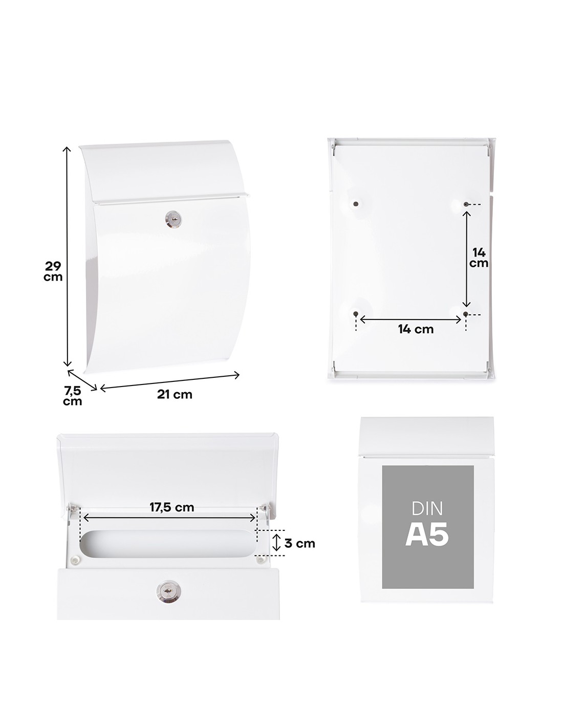 Buzón individual exterior, pequeño, galan, acero, blanco, 21 x 7,5 x 29 cm