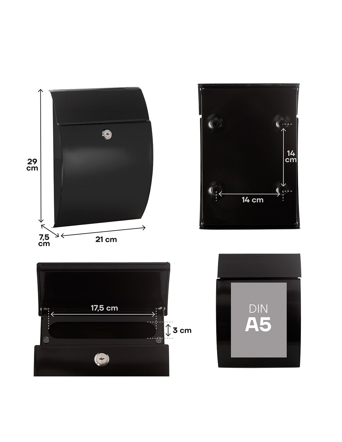 Buzón individual exterior, pequeño, galán, acero, negro, 21 x 7,5 x 29 cm