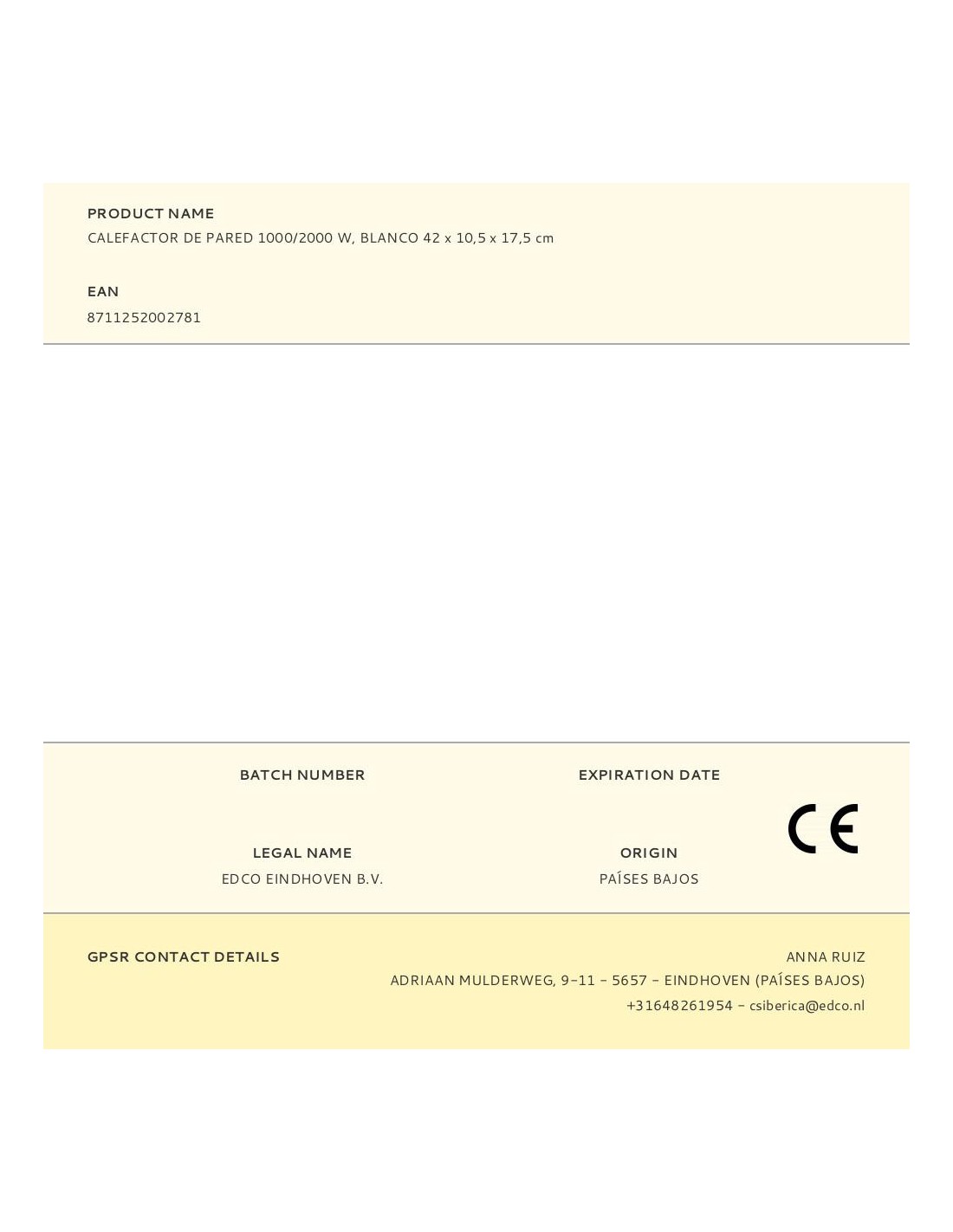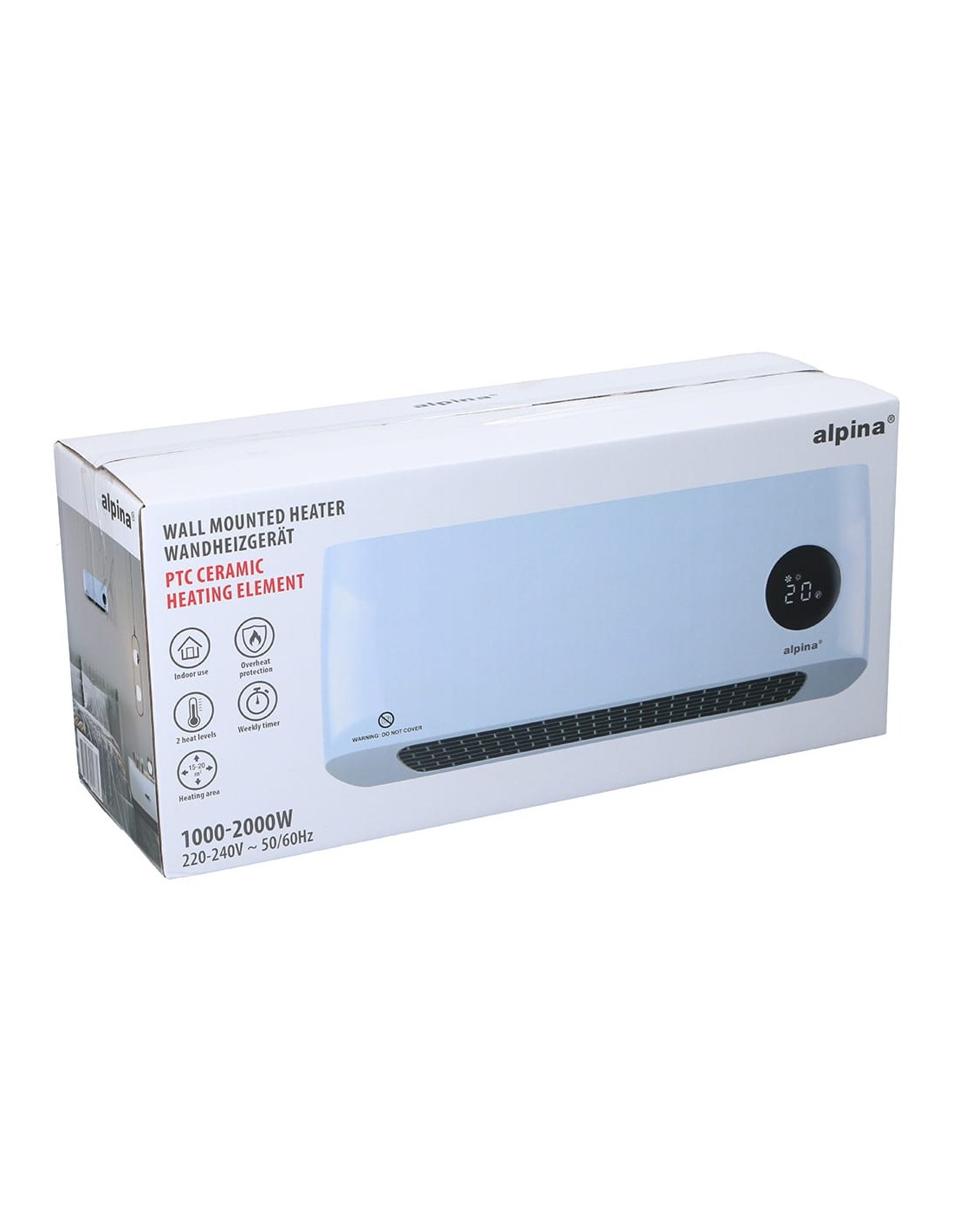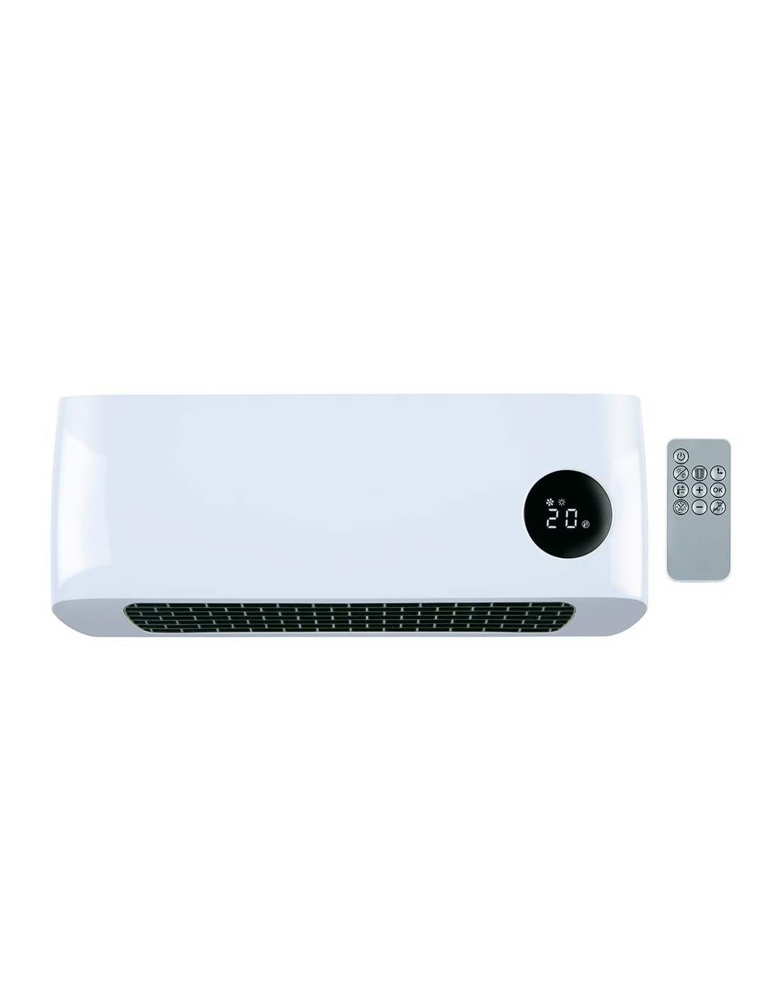 Calefactor de pared 2 potencias de calentamiento: 1000/2000 w 220-240~50 hz para uso interior superficie de calefacción 15-20 m², elementos calefactores cerámicos ptc, protección contra sobrecalentamiento función de temporizador por horas o semanal ajuste de temperatura 18-45 ºc, temperatura ambiente con pantalla led, detección de ventana abierta, corte térmico de seguridad. cable de 1,5 m. incluye mando a distancia (pila cr2025 incluida) y tornillos de montaje. color blanco. dimensiones: 42 x 10,5 x 17,5 cm