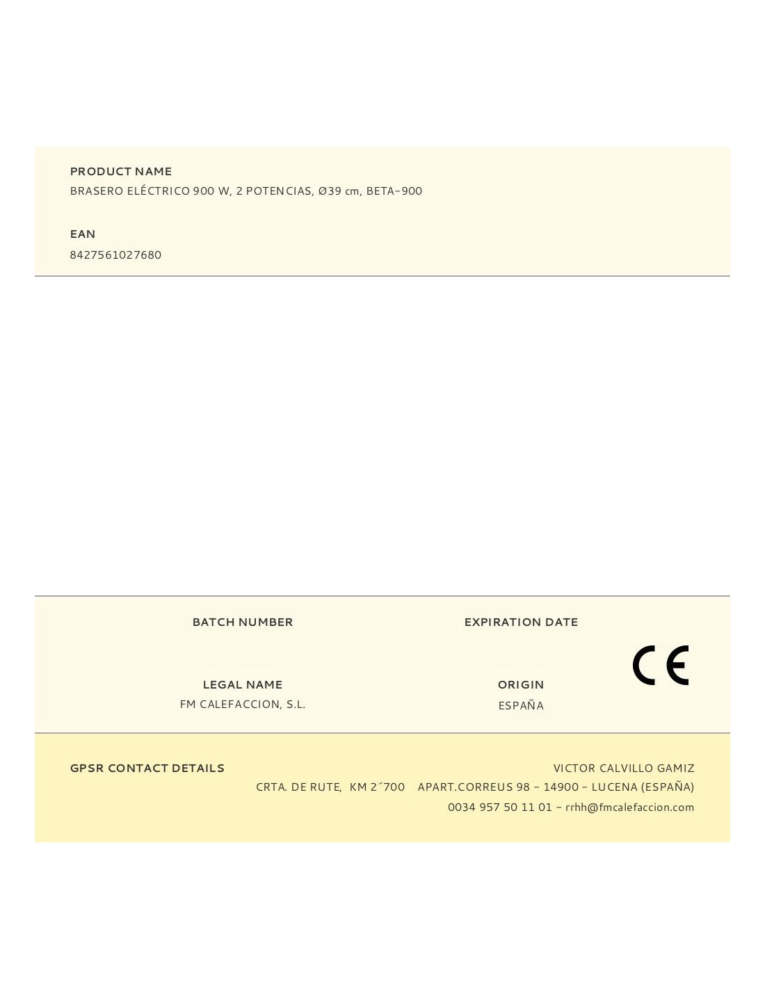 Brasero eléctrico beta-900, 2 potencias 450 w / 900 w, ø39 cm