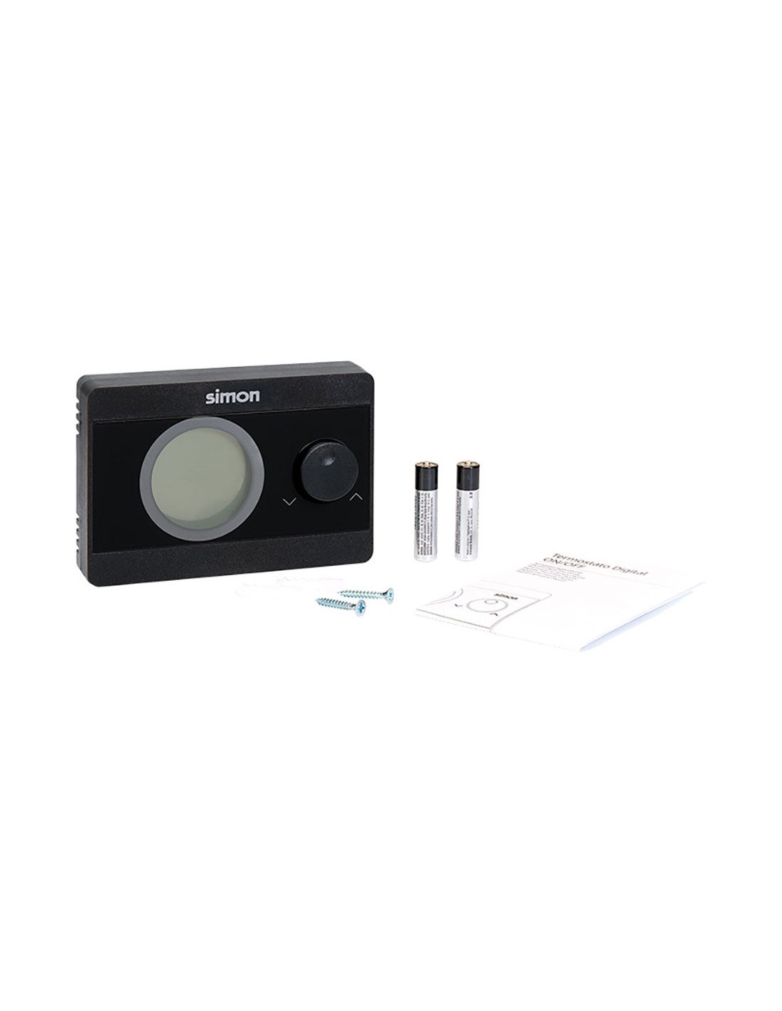Termostato digital af521101 on/off control de temperatura fácil y eficiente pantalla retroiluminada, muestra de forma continua las temperaturas ambiente y seleccionada, operación intuitiva compatible con calefacción y a/a rango de temperatura: 5°c - 30°c para instalación en superficie alimentación con 2 baterías aaa incluidas color negro