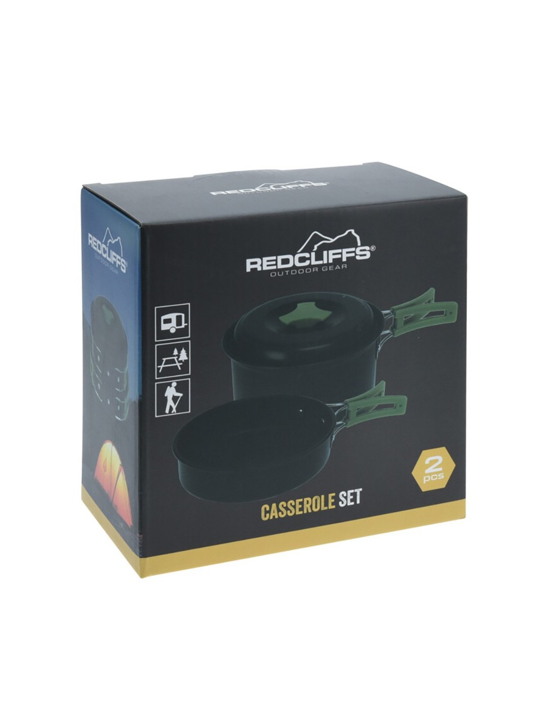 Cacerolas de aluminio anodizado con asas de acero inoxidable. incluye 2 piezas: 1 cacerola con tapa ø14 x 7 cm - 900 ml, 1 cacerola ø15 x 4 cm - 600 ml con asas plegables en color verde y una bolsa negra para su almacenamiento