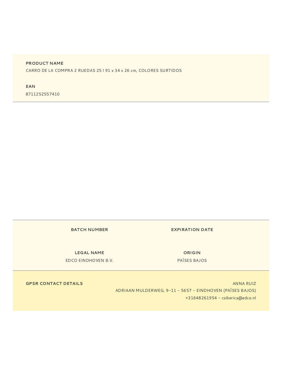 Carro de la compra 2 ruedas 25 l 91 x 34 x 26 cm, colores surtidos