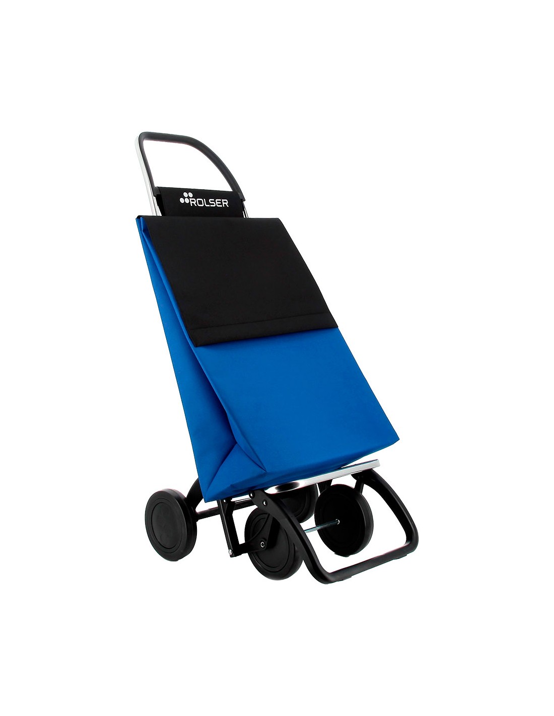 Carro de aluminio de 2/4 ruedas. en posición de dos ruedas para llevar detrás cuando está vacío, y empujando delante cuando está lleno con 4 ruedas. chasis con apoyo delantero y base inferior abatible para guardar en espacios pequeños. bolsa basic con capacidad 43 l fabricada en poliéster. carga recomendada: 25 kg carga máxima: 40 kg. dimensiones plegado: 390 x 215 x 1050 mm. dimensiones abierto 4 ruedas: 390 x 470 x 925 mm