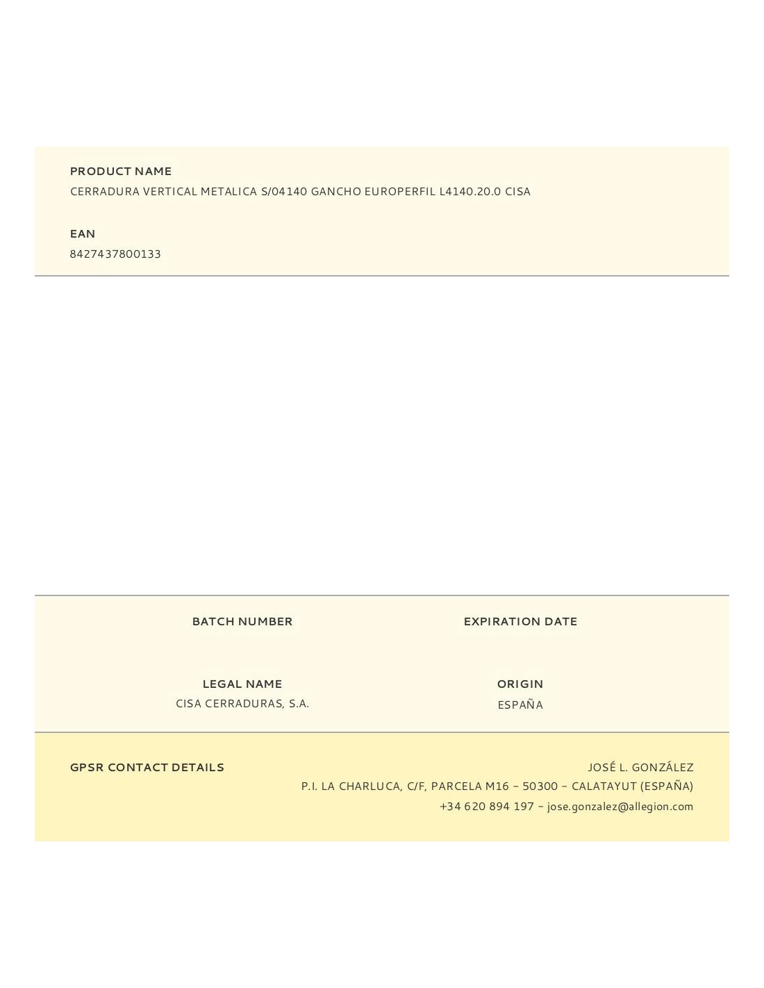 Cerradura vertical metalica s/04140 gancho europerfil l4140.20.0 cisa. cerradura vertical gancho basculante con cilindro europerfil s/04140 e.20 con caja cincada. frente y cerradero en acero inoxidable