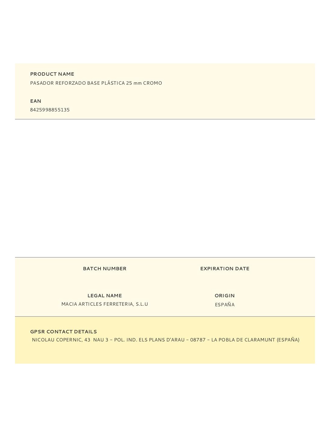 Pasador metálico con base plástica resistente. ideal para puertas, ventanas y muebles. disponible en medidas de 20 mm y 25 mm. acabados: cromo, cromo mate y dorado. fácil instalación y alta durabilidad. incluye tronillería