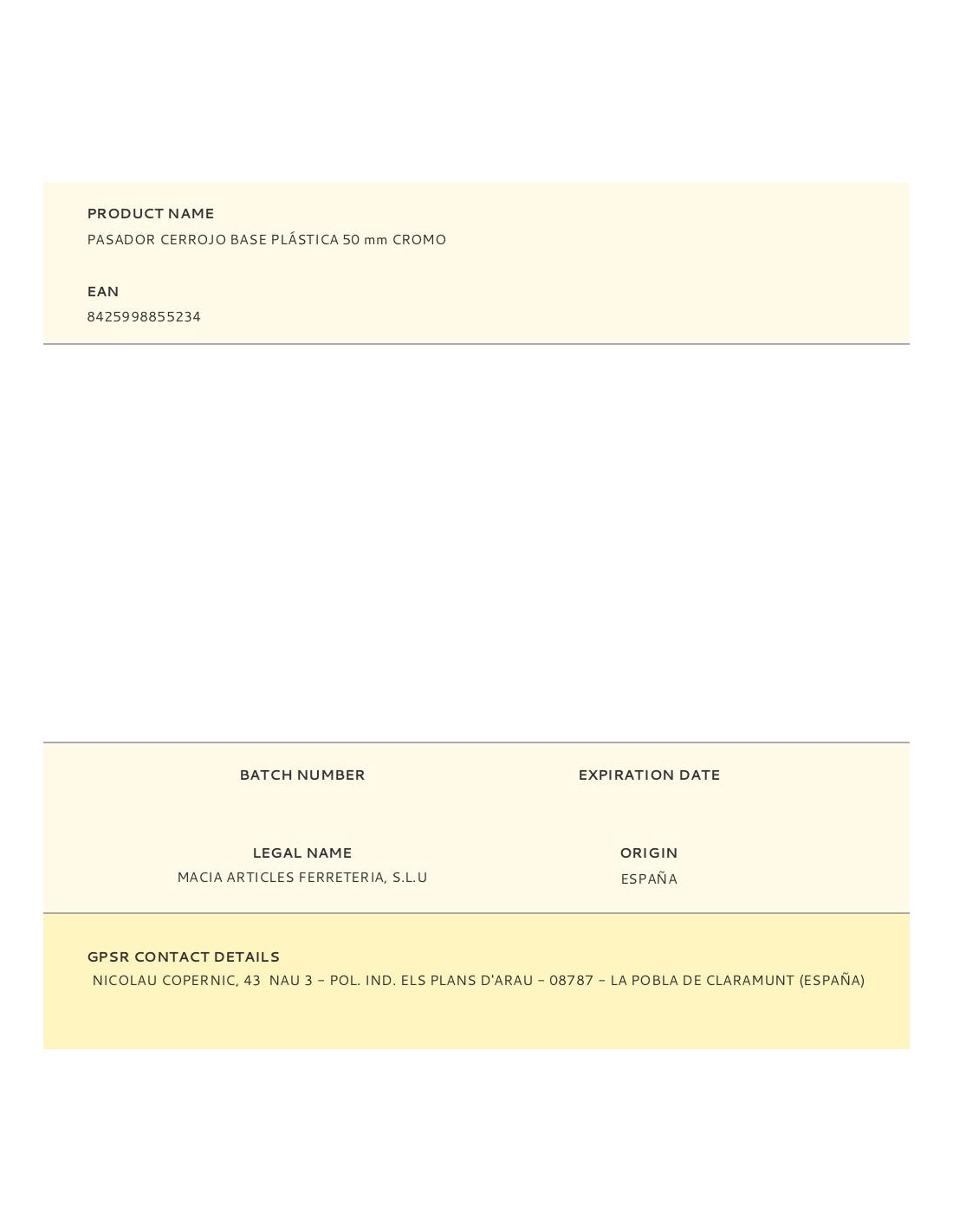 Pasador tipo cerrojo con base plástica resistente, ideal para puertas, ventanas y muebles. disponible en medidas de 35 mm y 50 mm. acabados: cromo, dorado, cromo mate, blanco y cuero. instalación sencilla y alta durabilidad.