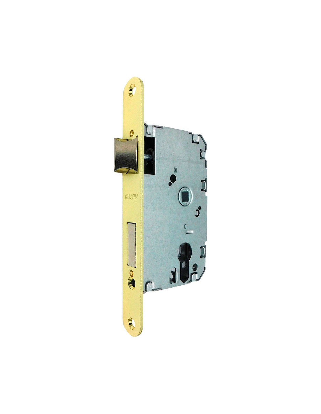 Cerradura embutir cre03 para cilindro de perfil europeo con leva larga (l15) para instalar en puertas de madera, con canto redondo, resbalón reversible y nueca para cuadradillo de 8 mm esta cerradura tiene una distancia entre ejes de 47 mm y viene preparada con una entrada de 40 mm no incluye cilindro incluye protector de escudo, cerradero y tornillería con caja cerrada y mecanismo interior de acero desplazamiento de 20 mm (2 vueltas) fabricada en acero, acabado en latonado
