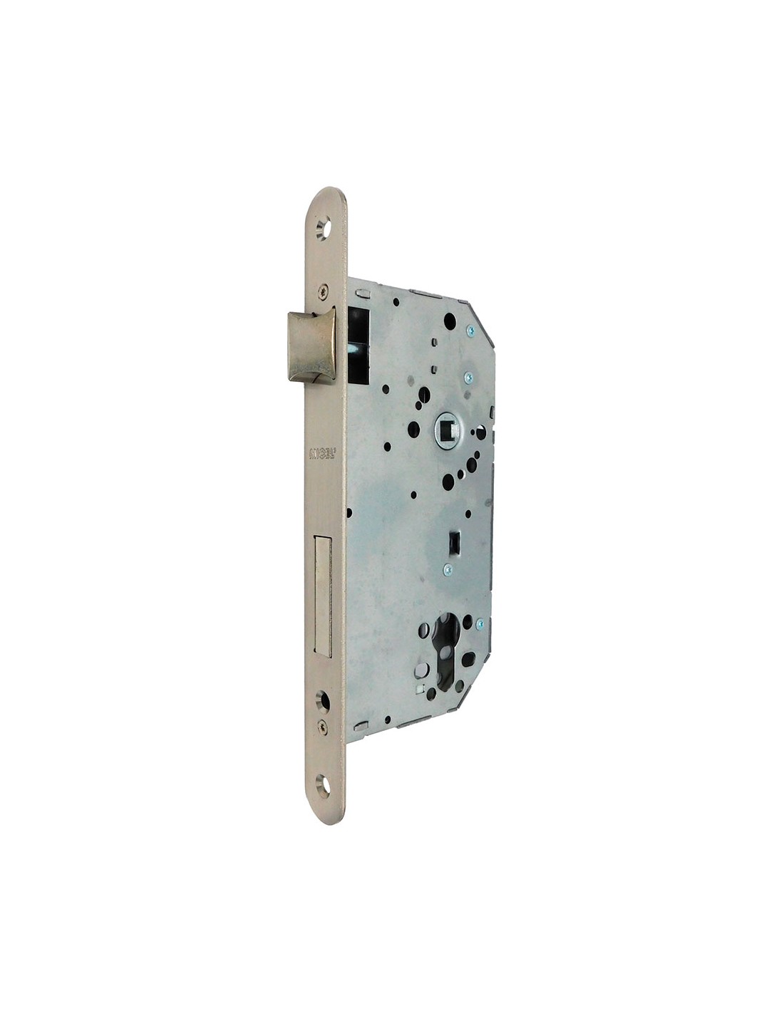 Cerradura embutir cre06 para cilindro de perfil europeo con leva larga (l15) para instalar en puertas de carpintería de madera, con canto redondo, picaporte reversible y nueca para cuadradillo de 8 mm esta cerradura tiene una distancia entre ejes de 85 mm y viene preparada con una entrada de 60 mm no incluye cilindro con caja cerrada y mecanismo interior de acero desplazamiento de 20 mm (2 vueltas) incluye protector de escudo, cerradero y tornillería fabricada en acero, acabado en níquel satinado