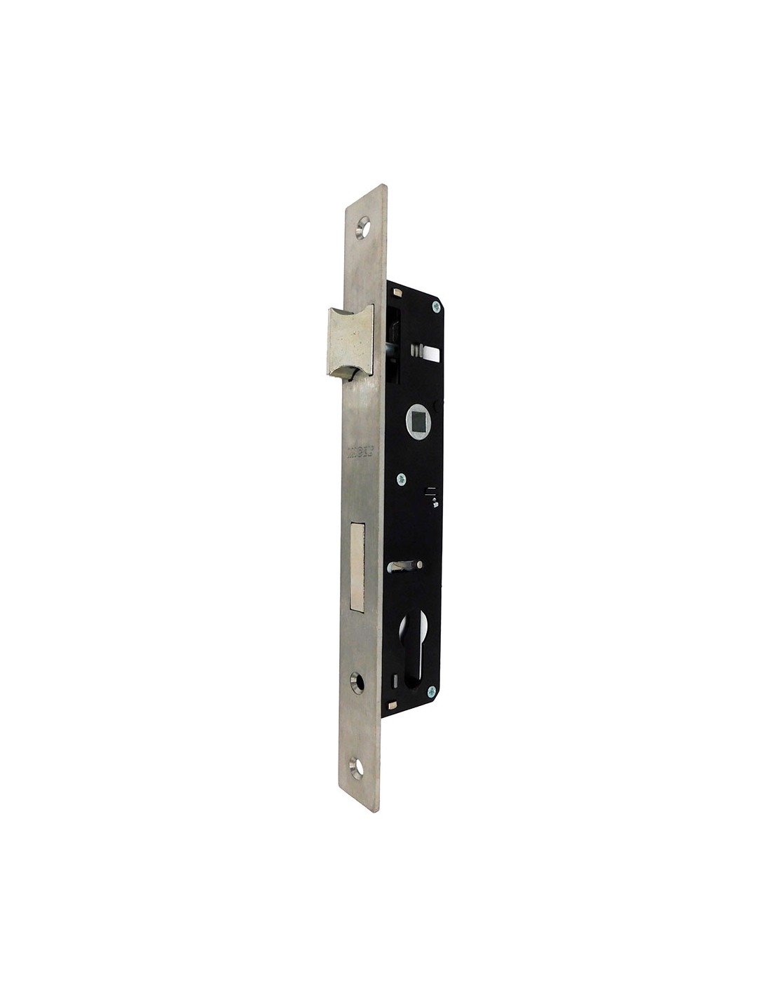 Cerradura embutir cre08 para cilindro de perfil europeo con leva larga (l15) para instalar en puertas de carpintería metálica con canto cuadrado, resbalón reversible y nueca para cuadradillo de 8 mm esta cerradura tiene una distancia entre ejes de 85 mm y viene preparada con una entrada de 20 mm no incluye cilindro incluye 2 protectores de escudo (plástico), cerradero y tornillería fabricada en acero inoxidable, acabado en inox