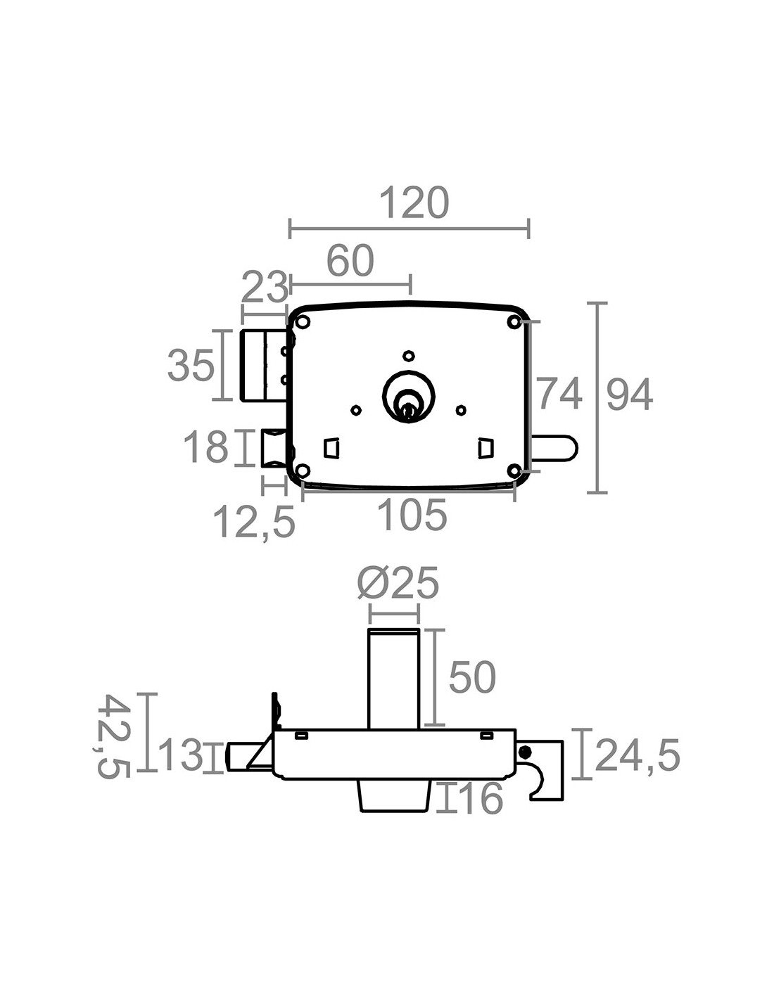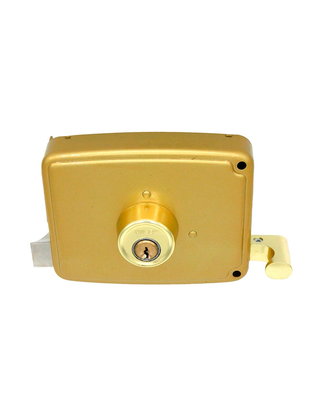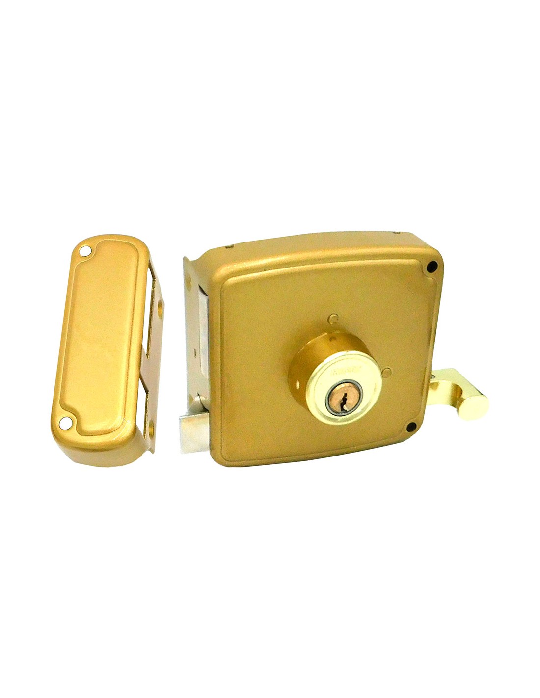 Cerradura sobreponer crs02 60 x 120 mm para instalar en puertas de carpintería de madera, reforzando la seguridad en la entrada del hogar u otras estancias como despachos, locales comerciales, etc. el cilindro que lleva es de forma redonda de 5 pines es de mano derecha desplazamiento de 20 mm (2 vueltas) incluye palanca de cierre, lengüeta, tirador y 5 llaves tipo serreta la llave en bruto para copias adicionales es la referencia 10791 fabricada en acero, acabado pintado en oro