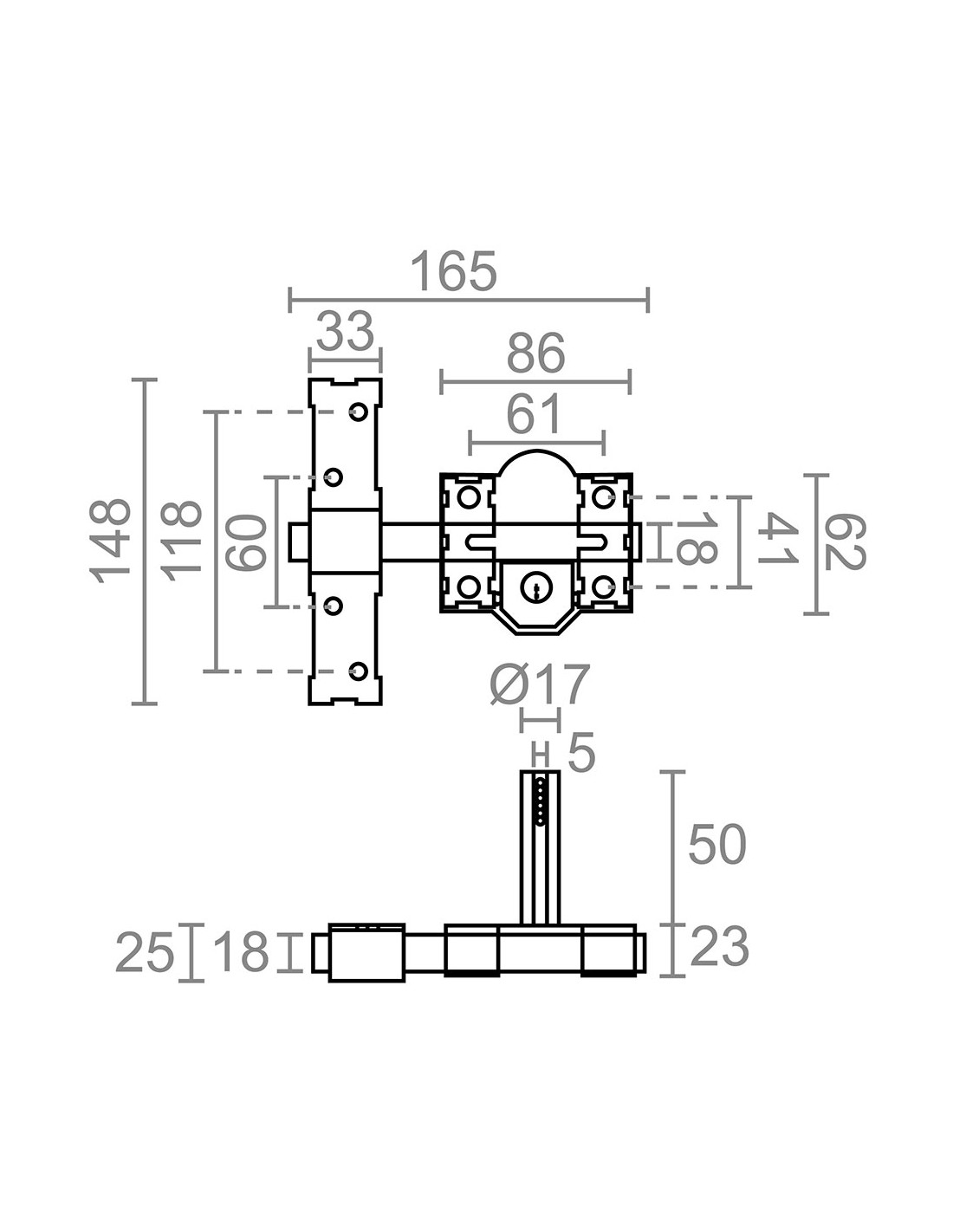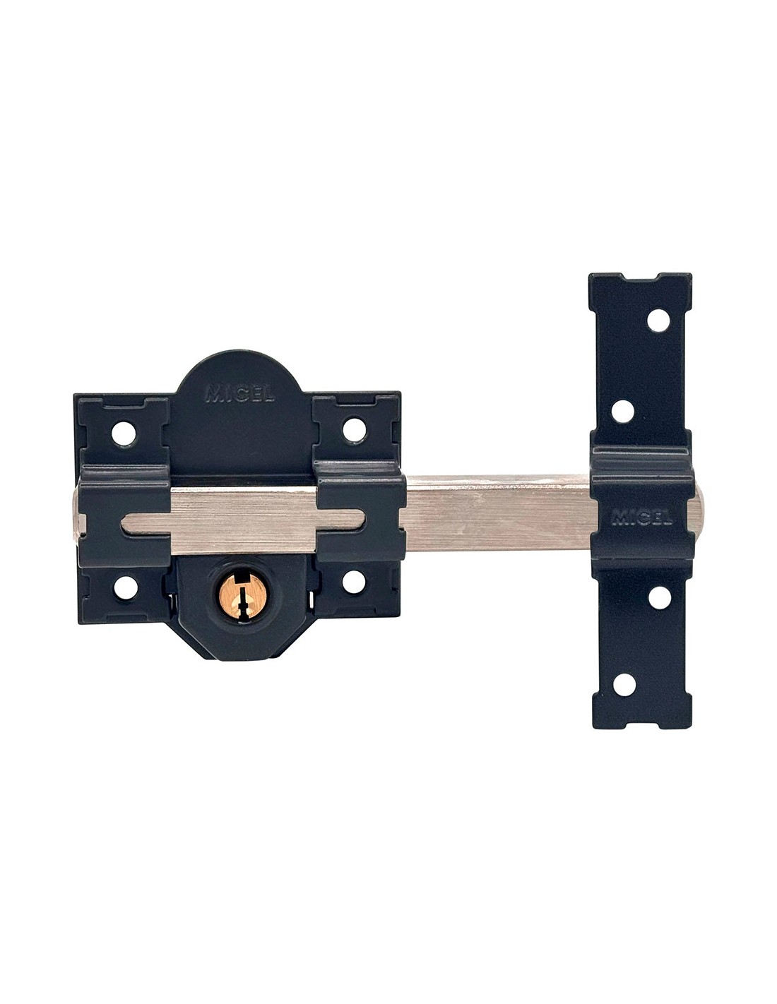 Cerrojo de sobreponer crr09 con placa de 86 mm y cilindro de boca pera de 50 mm para reforzar la seguridad mediante la instalación en cualquier tipo de puerta además, al ser reversible, no guarda mano el accionamiento se realiza de manera interna y externa mediante llave a través del cilindro con 3 llaves de serreta fabricado en acero, acabado pintado en gris