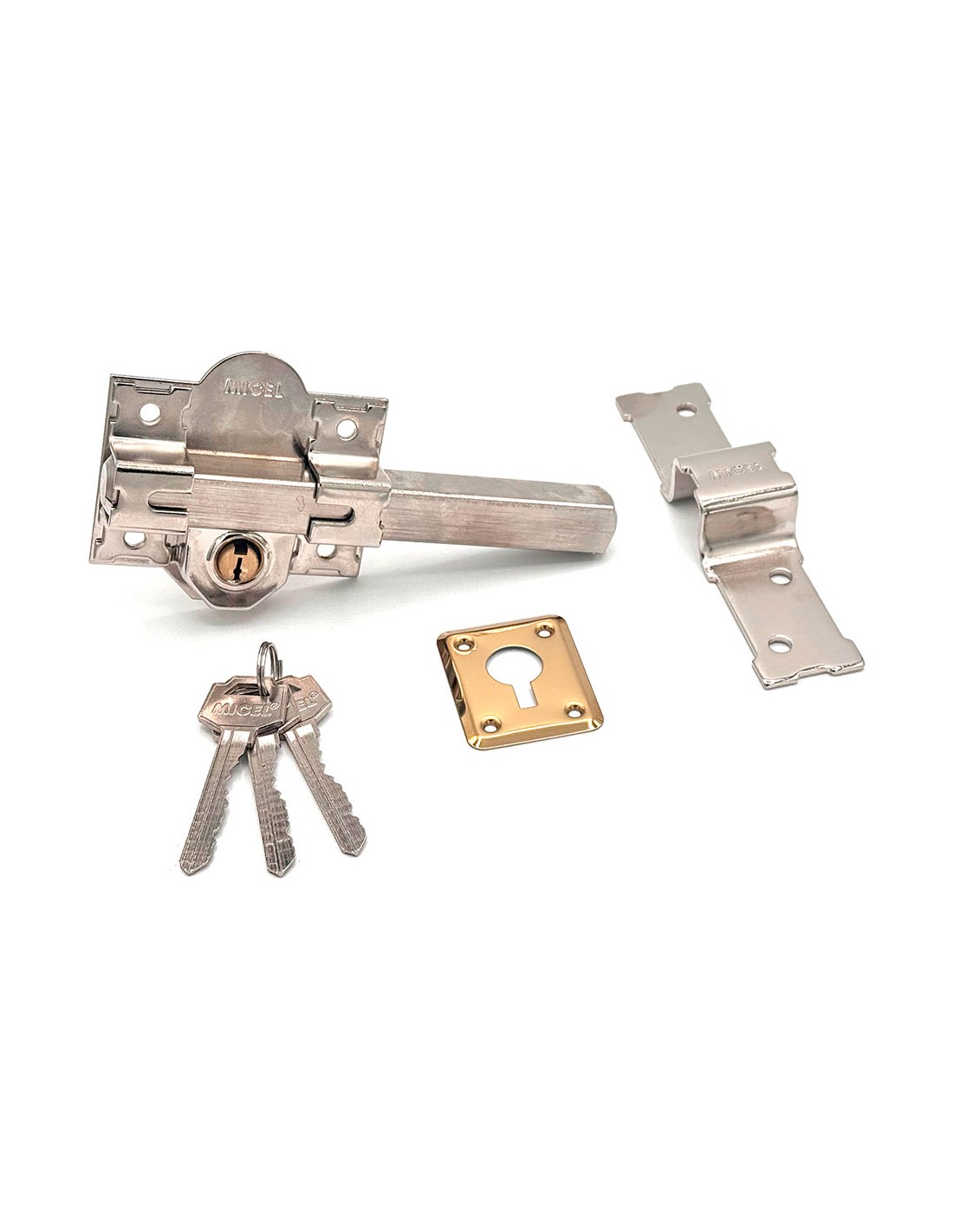 Cerrojo de sobreponer crr09 con placa de 86 mm y cilindro de boca pera de 70 mm para reforzar la seguridad mediante la instalación en cualquier tipo de puerta además, al ser reversible no guarda mano el accionamiento se realiza de manera interna y externa mediante llave a través del cilindro con 3 llaves de serreta fabricado en acero, acabado níquel