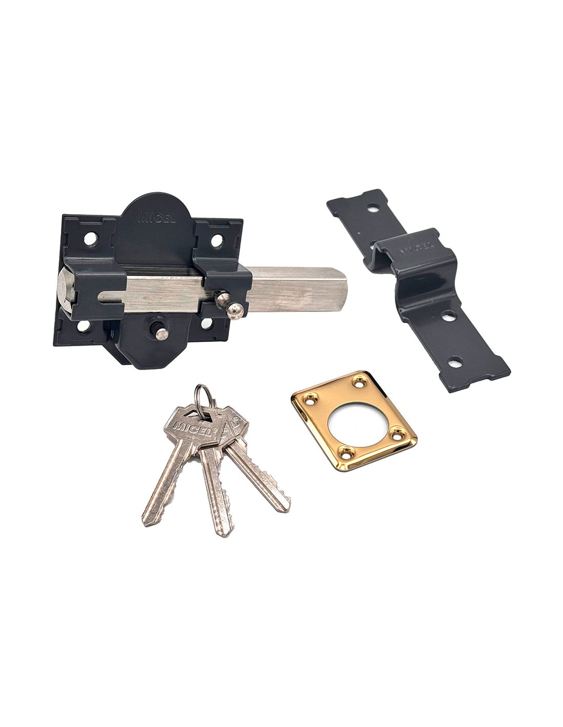 Cerrojo de sobreponer crr12 con placa de 86 mm y cilindro redondo de 50 mm para reforzar la seguridad mediante la instalación en cualquier tipo de puerta además, al ser reversible, no guarda mano el accionamiento interior se realiza mediante un botón, mientras que el exterior se realiza mediante llave a través del cilindro con 3 llaves de serreta fabricado en acero, acabado pintado en gris