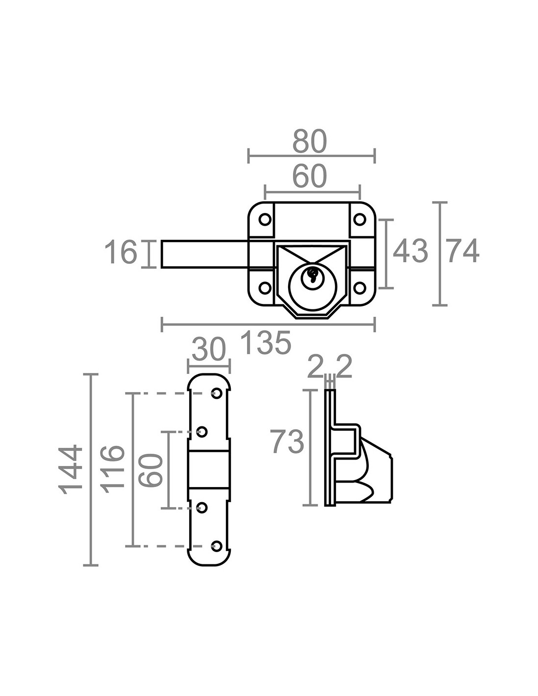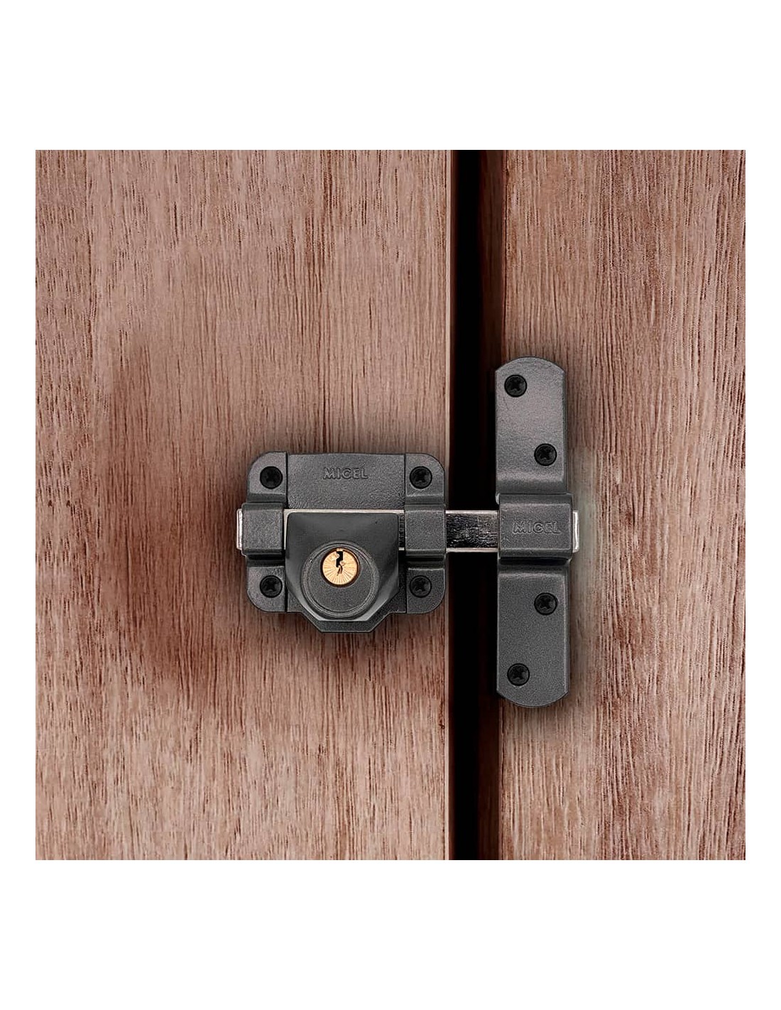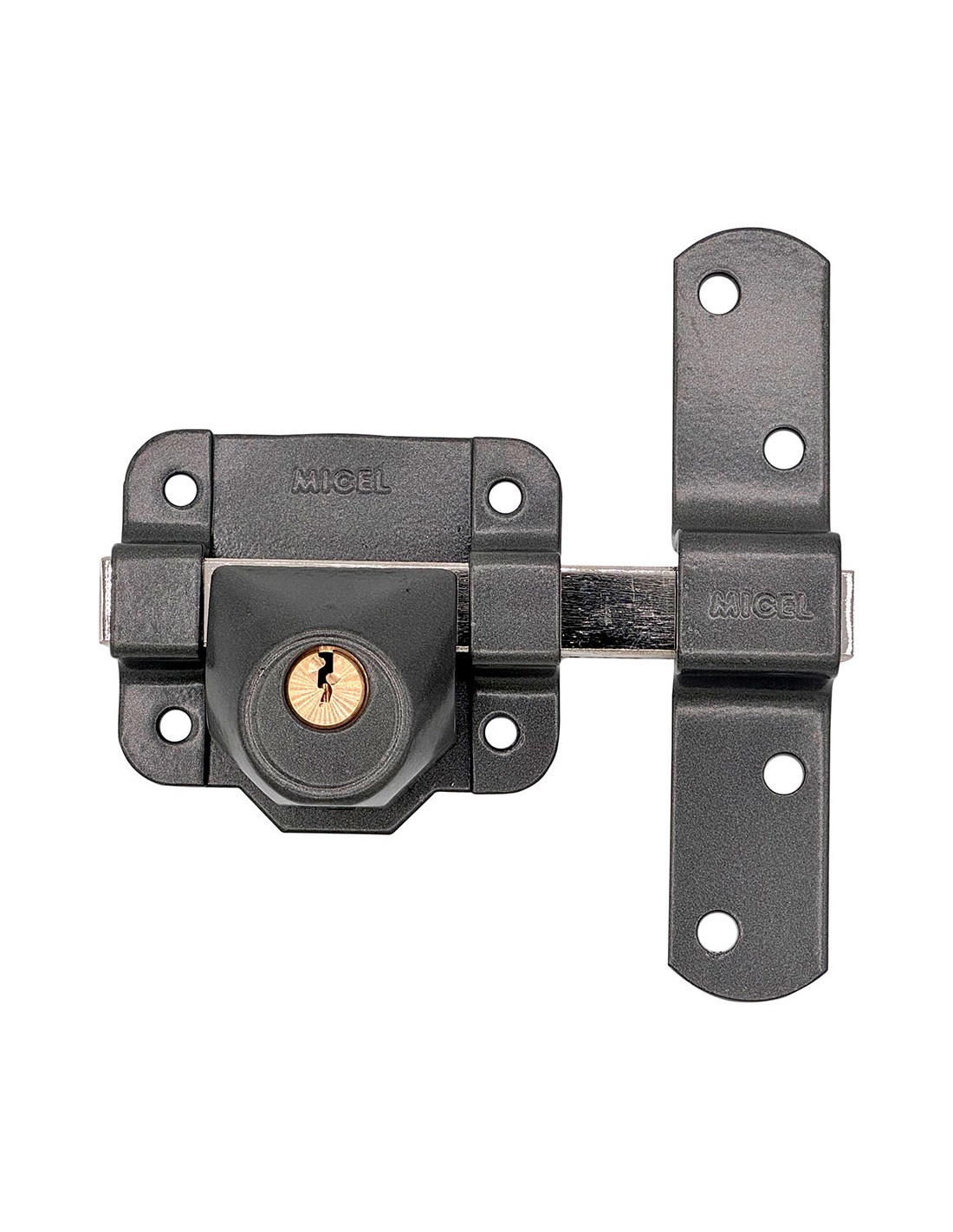 Cerrojo de sobreponer crr14 con placa de 86 mm y cilindro interior de 50 mm para reforzar la seguridad mediante la instalación en cualquier tipo de puerta además, al ser reversible no guarda mano el accionamiento interior se realiza mediante llave a través del cilindro, mientras que el exterior es ciego con 3 llaves de serreta fabricado en acero, acabado pintado en gris