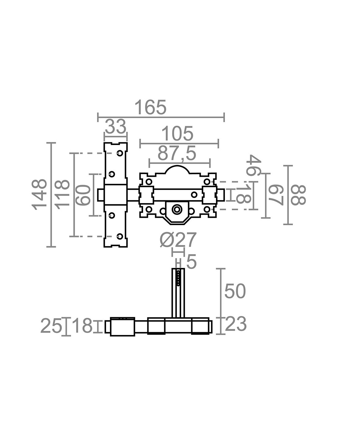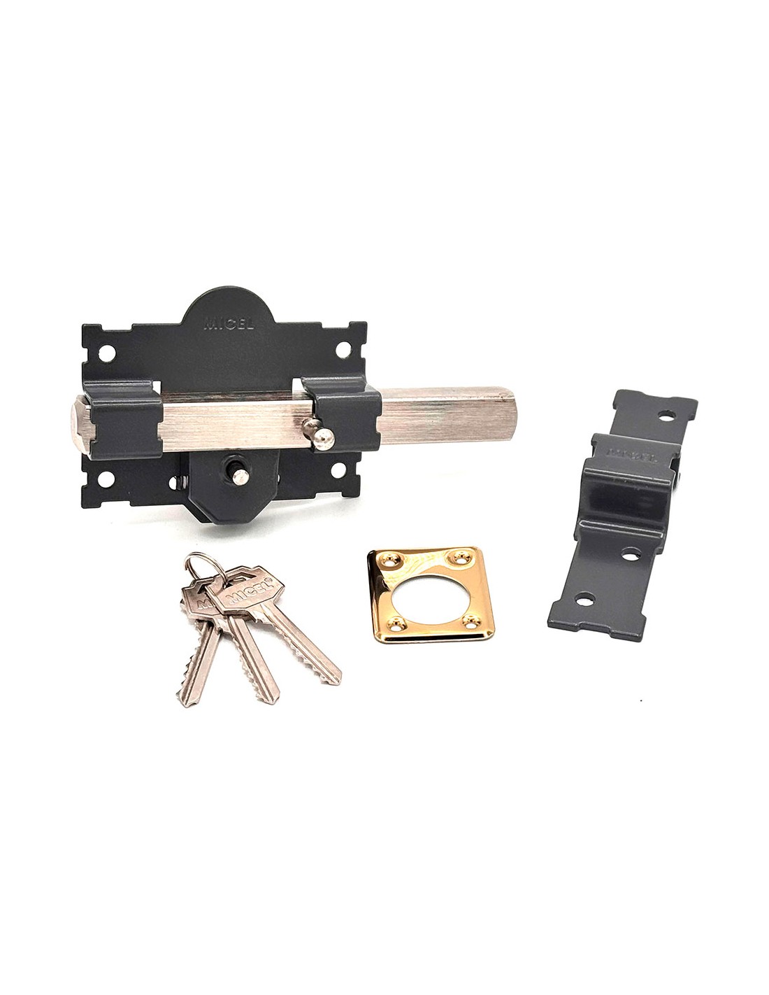 Cerrojo de sobreponer crr06 con placa de 105 mm y cilindro redondo de 50 mm para reforzar la seguridad mediante la instalación en cualquier tipo de puerta además, al ser reversible, no guarda mano permite el accionamiento interno mediante un botón, mientras que el exterior se realiza mediante llave a través del cilindro con llaves iguales amaestradas de serreta tipo a fabricado en acero, incluye tornillería, acabado pintado en gris