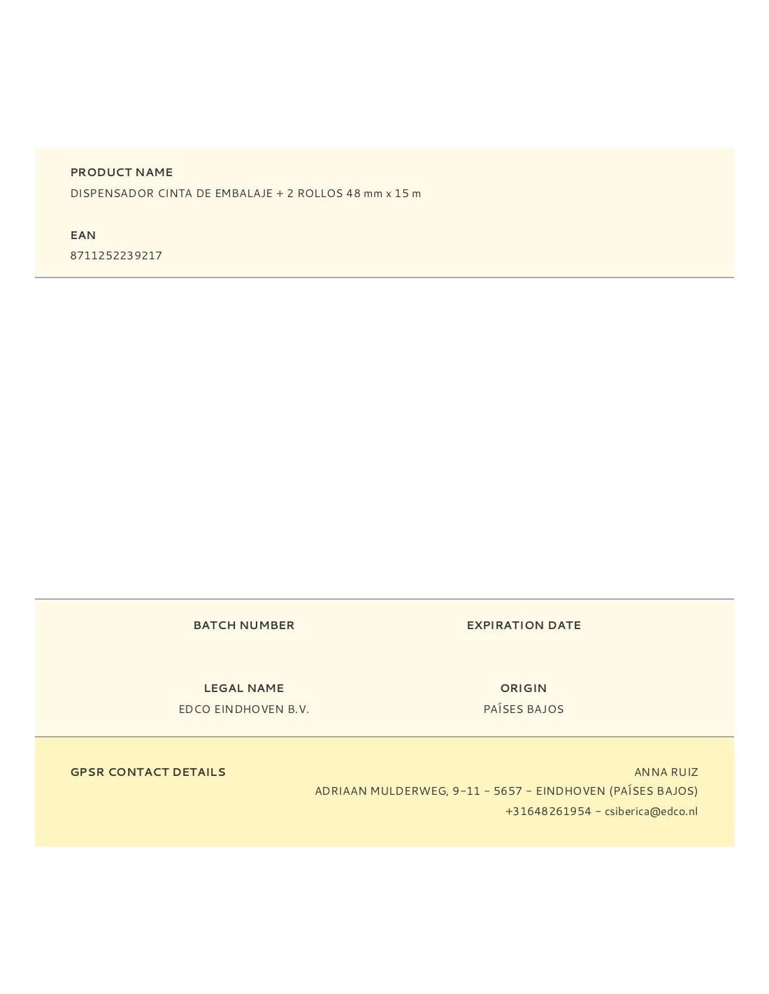 Dispensador cinta de embalaje + 2 rollos 48 mm x 15 m