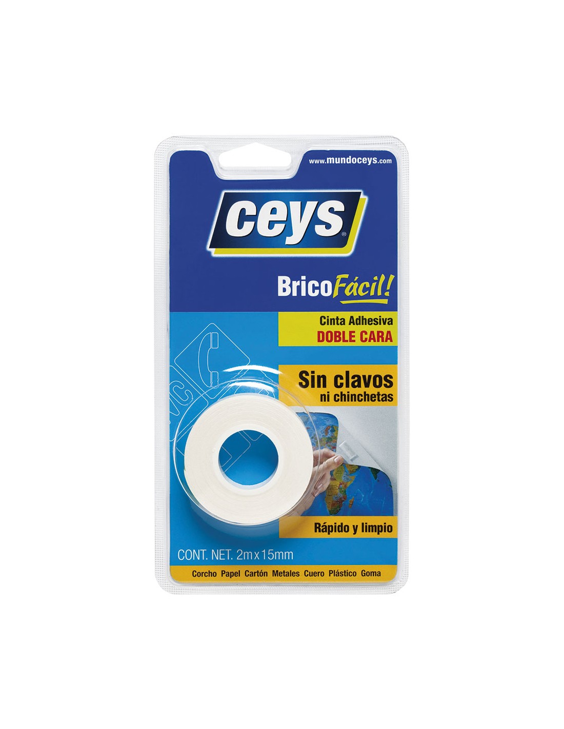 Cinta adhesiva de doble cara, instantáneo adhiere fuertemente en vertical sobre multitud de superficies lisas. dimensiones: 15 mm x 2 m