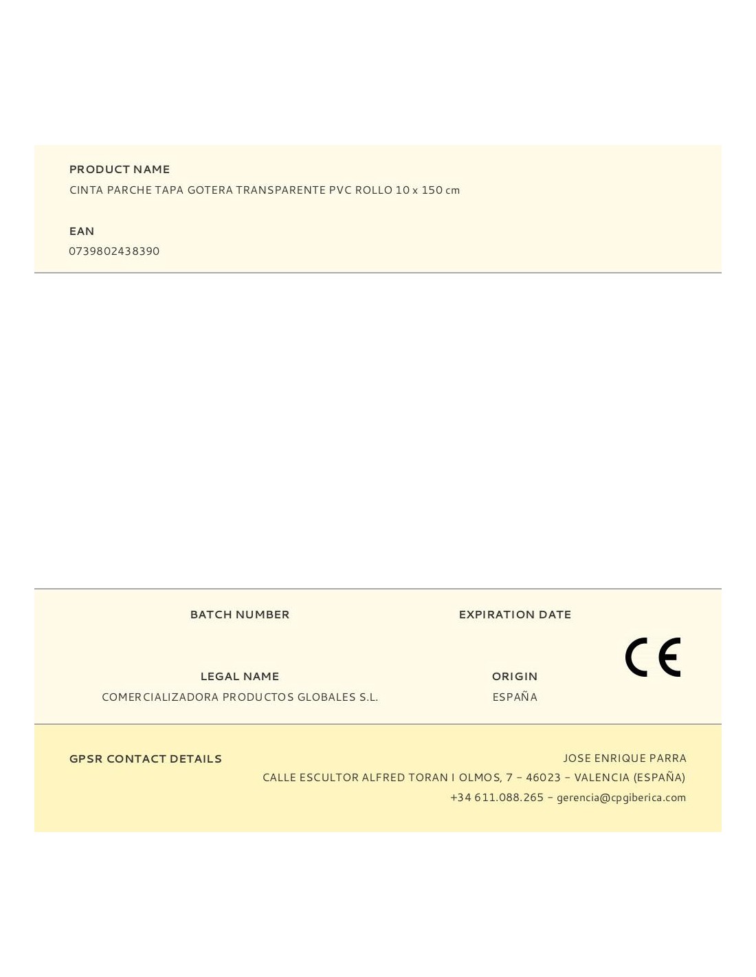 Cinta parche tapa gotera flexible de pvc transparente con adhesivo de caucho. resistente al agua. grosor de 0,7 mm rollo de 10 x 150 cm. se puede aplicar en toldos, piscinas, tanques, canaletas , mamparas, colchones inflables y cristales
