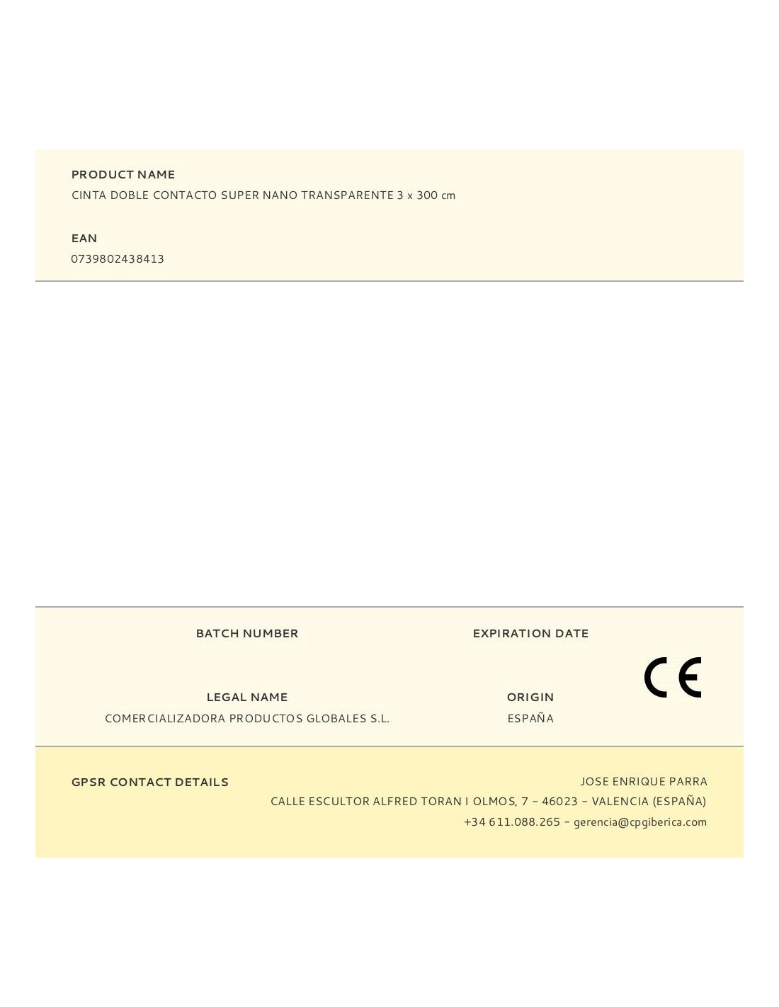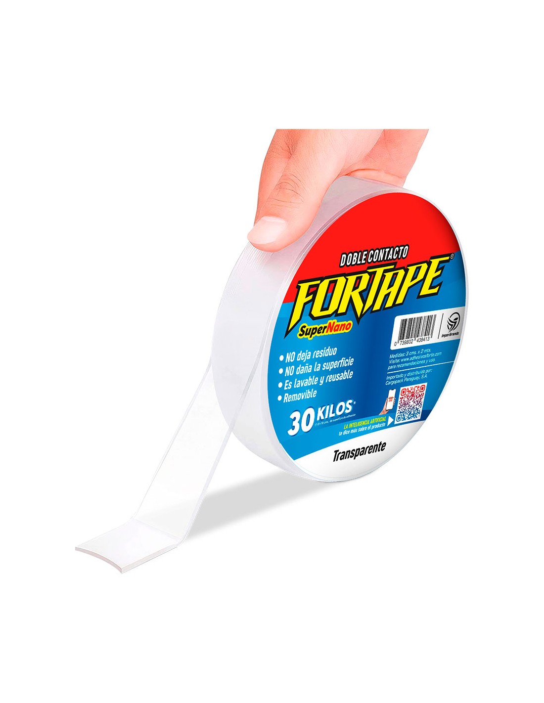 Cinta doble contacto de pvc acrílico con nanotecnología. no deja residuos, resistente al agua, rollo de 30 mm x 0,2 mm x 3 m. sirve para fijar cuadros en pared, baldas. 10 cm x 30 kg de carga máxima