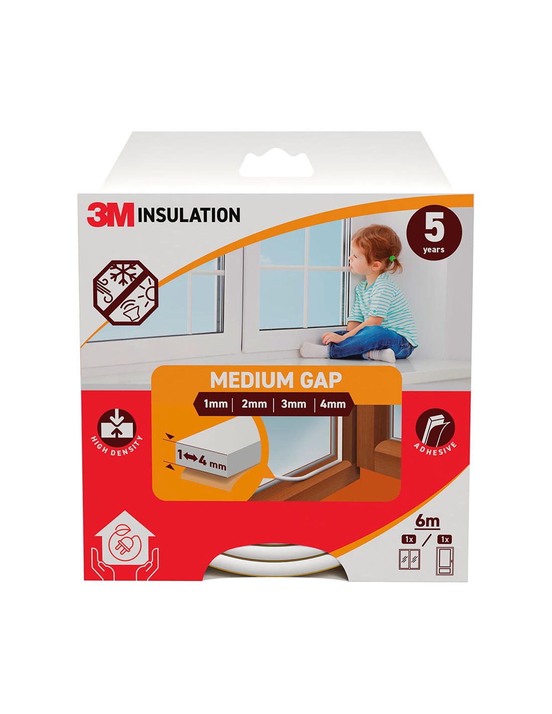 Burlete de aislamiento clásico para huecos medianos de 1 - 4 mm, blanco, 6 m