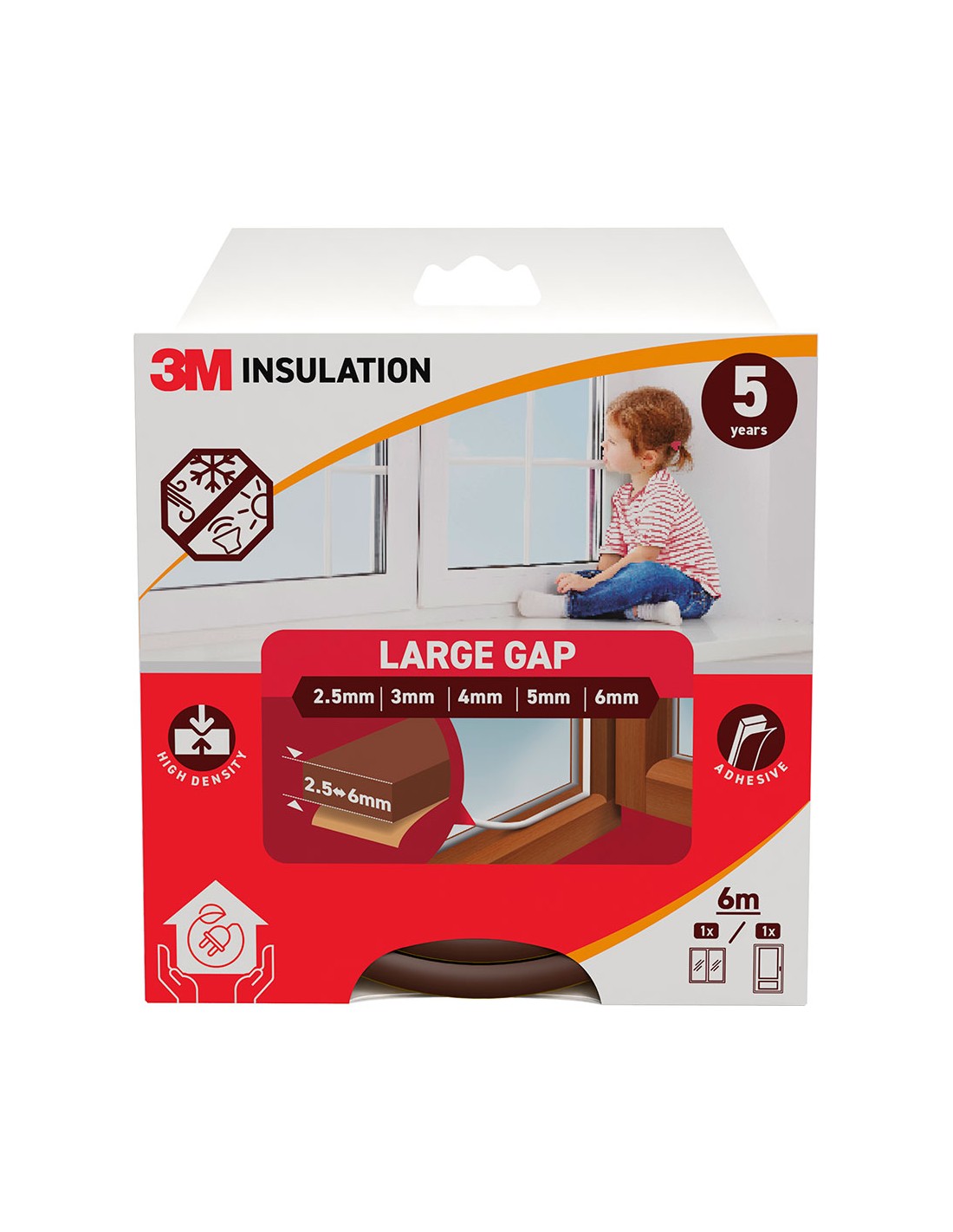 Burlete de aislamiento clásico para huecos grandes de 2,5 - 6 mm, marrón, 6 m