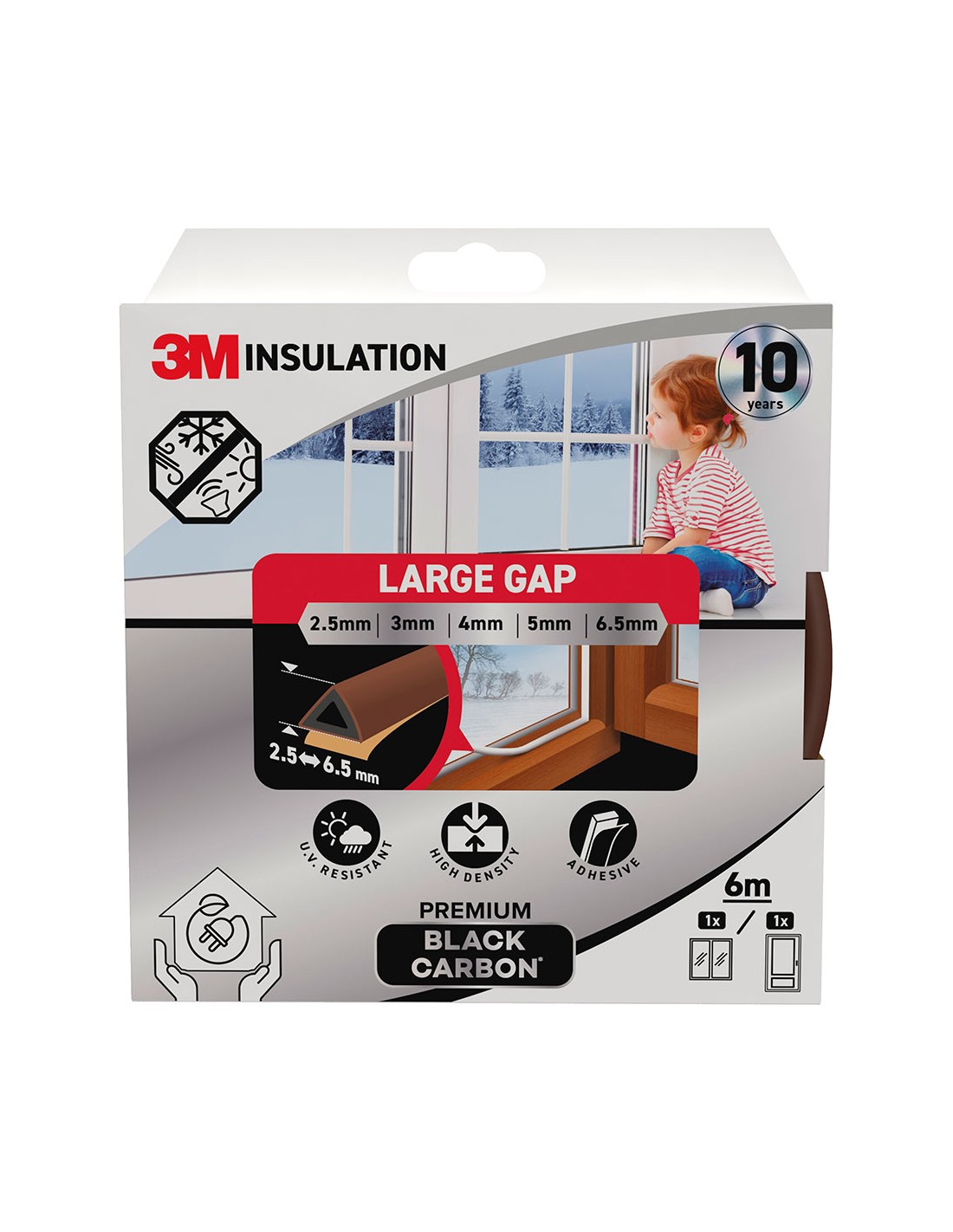 Burlete de aislamiento premium para huecos grandes de 2,5 - 6,5 mm, marrón, 6 m