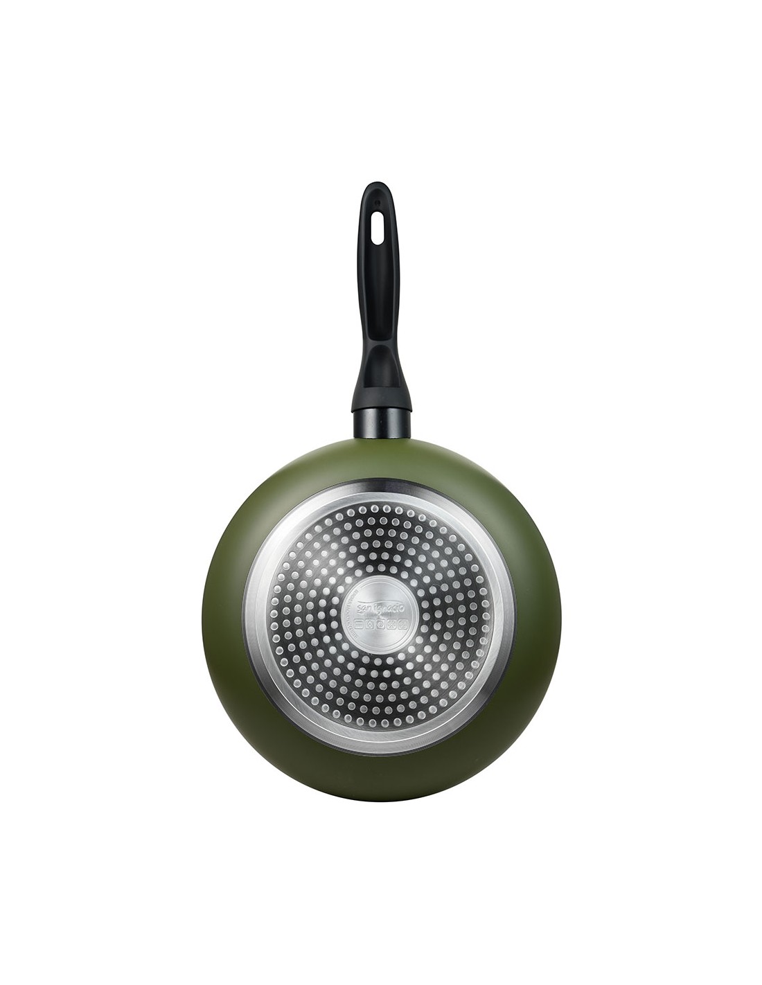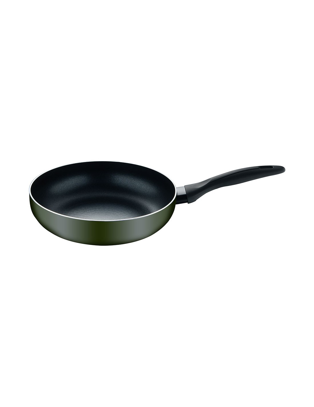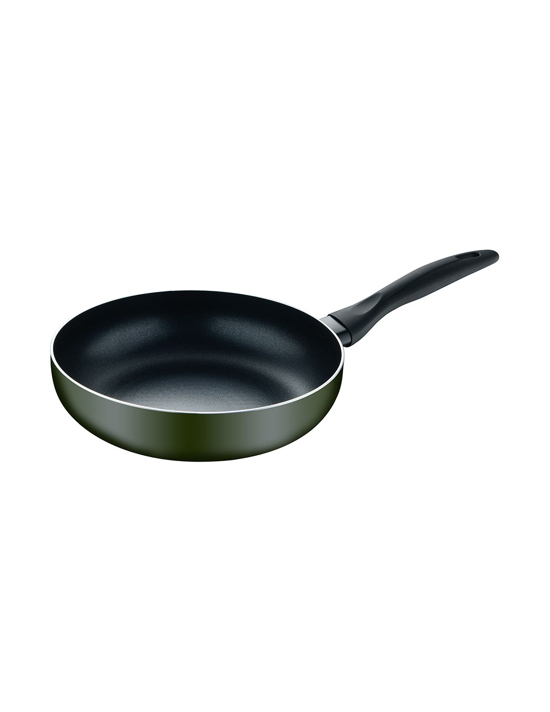 Sartén de aluminio prensado para inducción, acabado exterior verde, interior con revestimiento antiadherente negro, exterior resistente al calor en pq-7764c. mango negro resistente al calor con tacto suave, ø20 x 5,5 cm