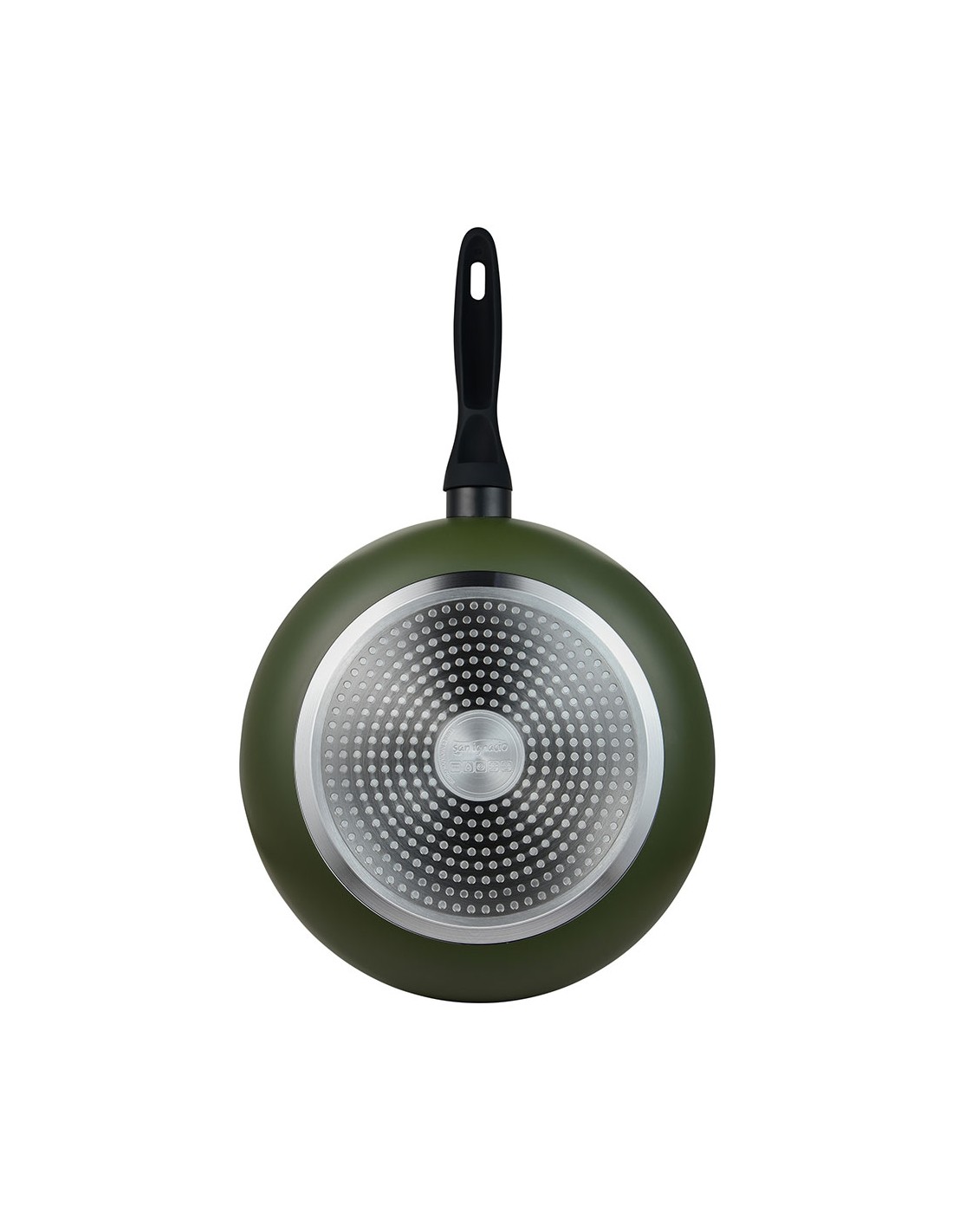 Sartén de aluminio prensado para inducción, acabado exterior verde, interior con revestimiento antiadherente negro, exterior resistente al calor en pq-7764c. mango negro resistente al calor con tacto suave, ø30 x 6,8 cm